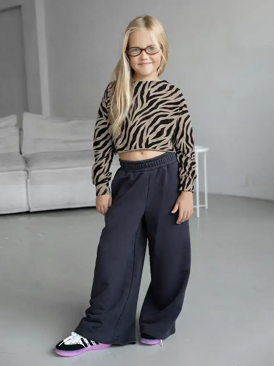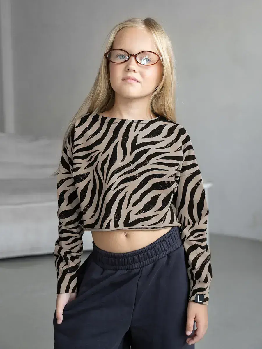 Наш детский укороченный лонгслив для девочки - настоящая находна для девочек и подростков! Наш лонг с принтом в виде зебры выполнен из нетоксичных, экологически чистых материалов, чтобы обеспечить комфорт и безопасность вашим детям. Дышащая ткань лонгслива позволяет воздуху циркулировать, сохраняя прохладу тела вашего ребенка в летний период во время прогулок, а также этот лонг идеально подходит для занятий спортом, для детского сада.