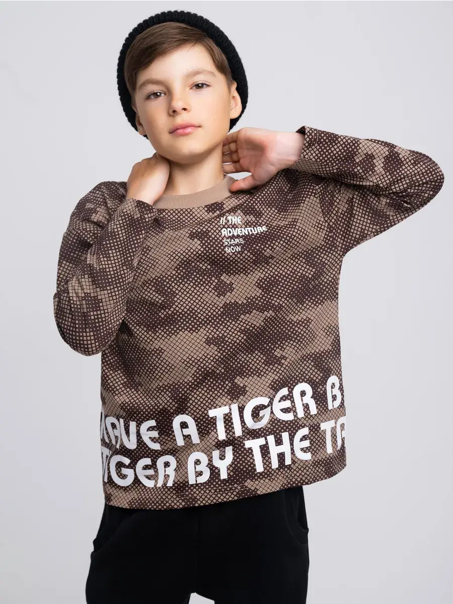 Стильный трикотажный лонгслив для мальчика от бренда LARETTO – это практичная и универсальная вещь, которую стоит добавить в гардероб ребенка. Благодаря дизайну она будет сочетаться с любой одеждой, а принт в виде надписи станет ярким акцентом. Ткань на 100% состоит из натурального хлопка, обеспечивает комфорт и мягкость при носке, но при этом не мнется и устойчива к деформации. Приятная к телу и легкая кофта с длинным рукавом подойдет для детей, которые любят активный образ жизни: она дарит коже возможность дышать и не сковывает движения. Лонгслив из нашей коллекции сочетает в себе стиль, функциональность и удобство, поэтому обязательно попадет в список любимых! Выбирайте Лонгслив LARETTO для вашего модника и создавайте яркие и стильные образы каждый день!