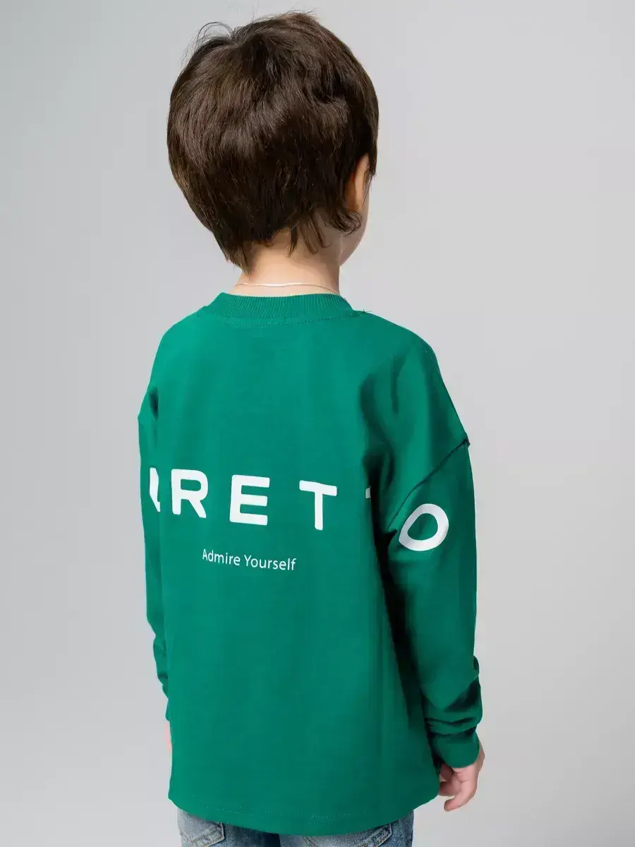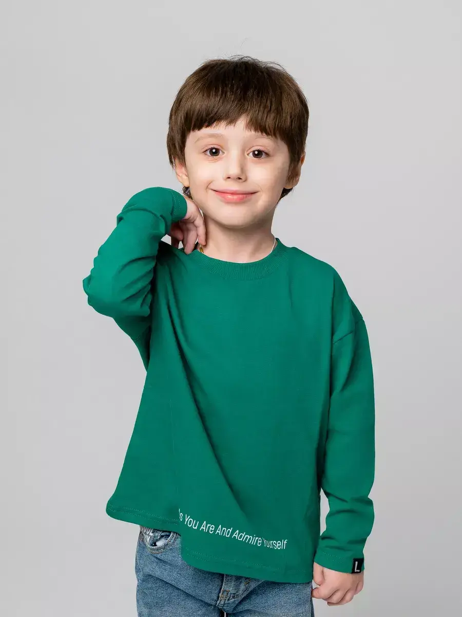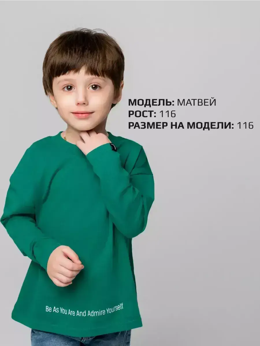 Лонгслив для мальчика зеленый - это незаменимая вещь в гардеробе юного модника. Однотонная футболка с длинным рукавом станет отличным выбором как для повседневной носки, так и для занятий спортом или школы. Уникальный принт и стильная надпись на одежде добавят ярких ноток в образ ребенка.