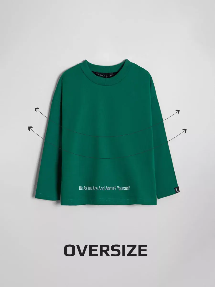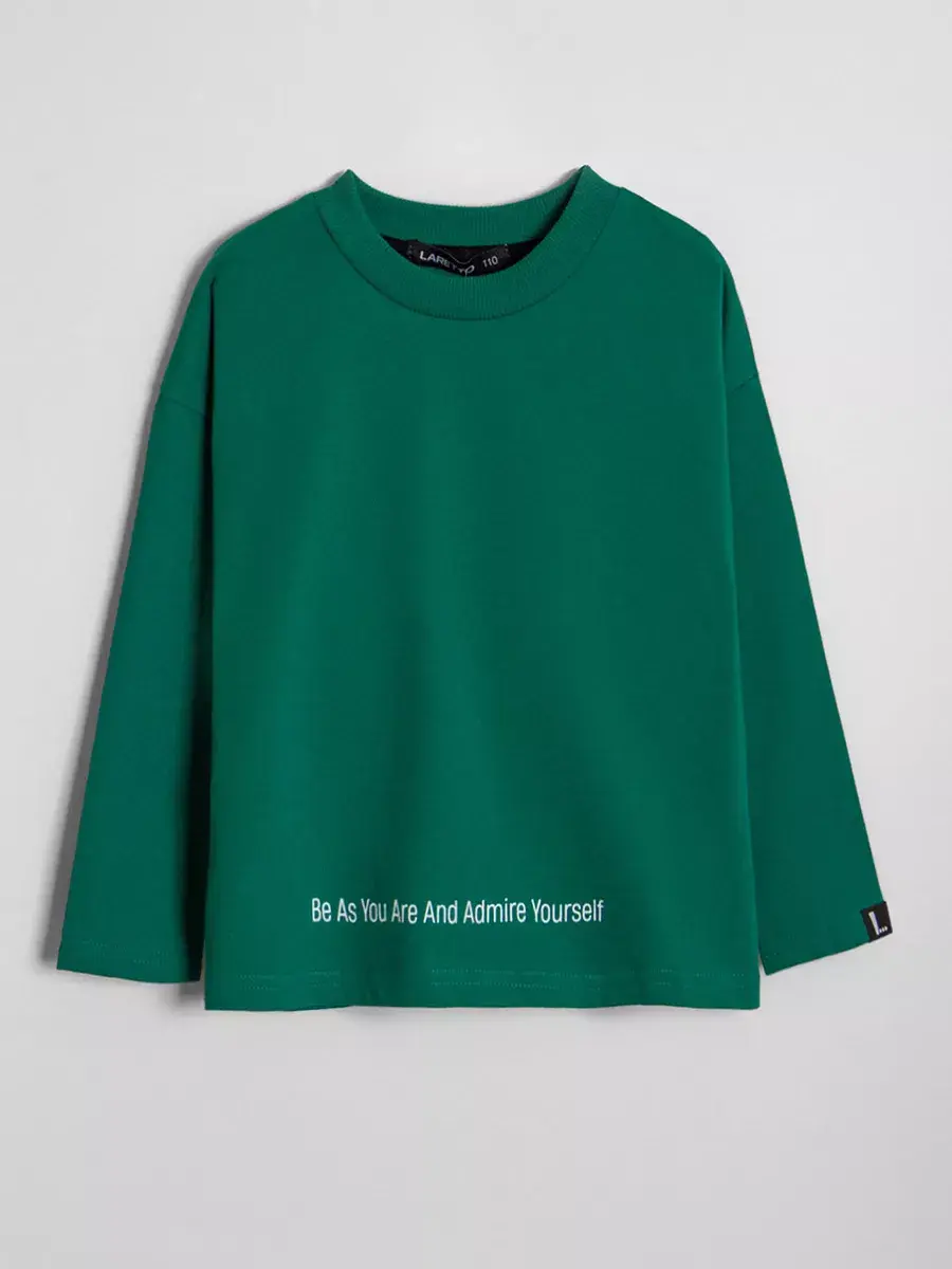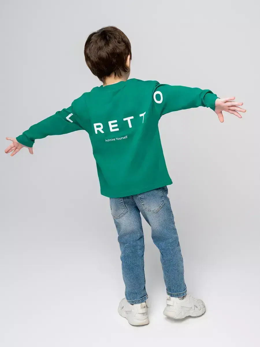 Лонгслив для мальчика зеленый - это незаменимая вещь в гардеробе юного модника. Однотонная футболка с длинным рукавом станет отличным выбором как для повседневной носки, так и для занятий спортом или школы. Уникальный принт и стильная надпись на одежде добавят ярких ноток в образ ребенка.