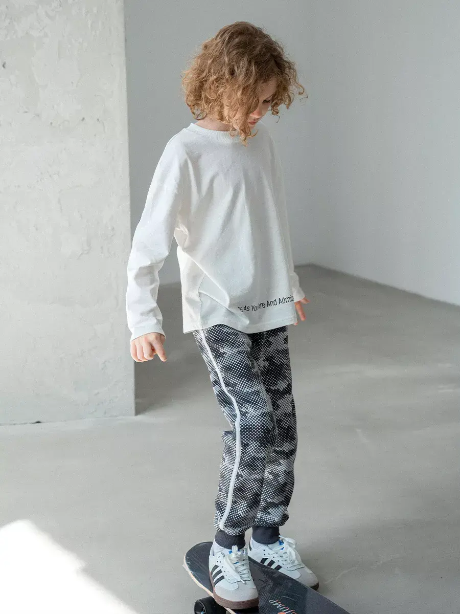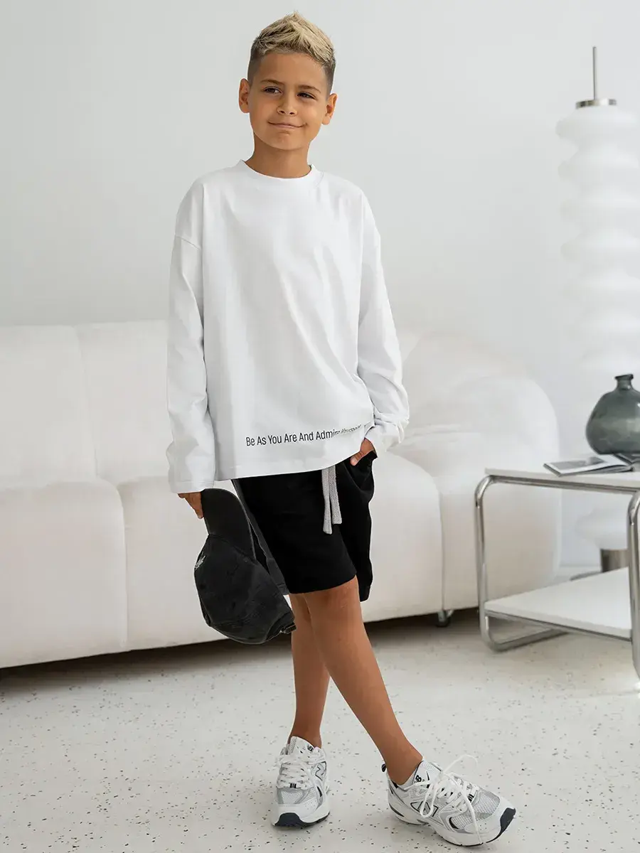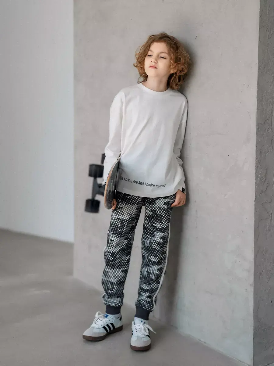 Модный трикотажный лонгслив - это незаменимая вещь в гардеробе юного модника. Однотонная футболка с длинным рукавом станет отличным выбором как для повседневной носки, так и для занятий спортом или школы. Уникальный принт и стильная надпись на одежде добавят ярких ноток в образ ребенка.