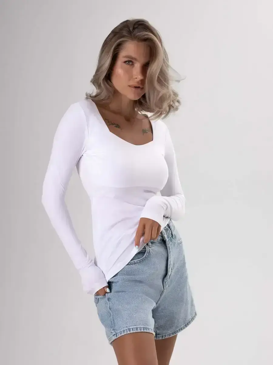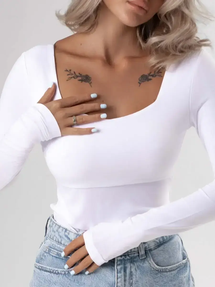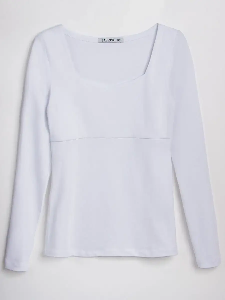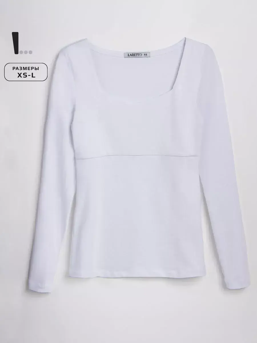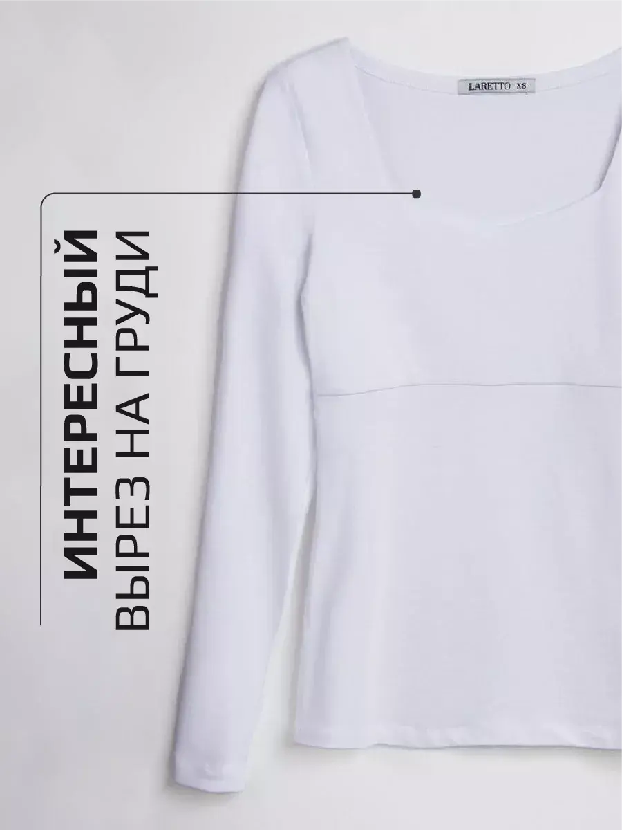 Лонгслив женский с вырезом каре и длинным рукавом мягко облегает силуэт, словно превращаясь во вторую кожу. Кофта из хлопка не просвечивает, выгодно подчеркивает линию декольте и талию. Уникальный по фасону вырез с подгибкой и аккуратно обработанные швы изделия создают элегантный, стильный и даже спортивный образ. Трикотаж премиум качества устойчив к износу, очень приятен к телу и хорошо тянется. Базовая вещь прекрасно впишется в гардероб, ведь с ней можно создавать деловой и вечерний look. Кофточка нарядная подойдет как для стройных, так и для девушек с формами, на высокий, средний и невысокий рост. Трикотажная вещь имеет облегающий силуэт и удлиненный фасон, что делает ее более универсальной. Белый лонгслив подойдёт для подростков в школу. Кофта с декольте - это лучшая изюминка для романтичного образа. Мы тщательно следим за качеством нашей продукции и радуемся, когда наши клиенты делятся своим мнением от покупки. Восхищайтесь собой вместе с LARETTO!