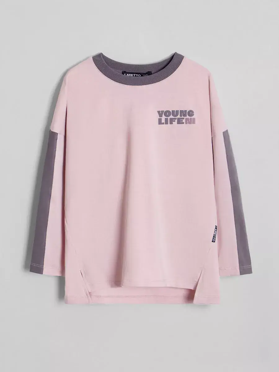 Лонгслив для девочки трикотажный от бренда LARETTO станет незаменимым атрибутом в гардеробе Вашего ребенка. Нарядная кофта с принтом выгодно дополнит любой look, будь то праздничное мероприятие или прогулка с друзьями. Детский свитшот подойдет для повседневной носки в садик, школу и в качестве одежды для дома. Модель идеальна не только для малышей, но и для подростков. Футболка с длинным рукавом выполнена из трикотажа Премиум качества, поэтому надолго сохранит первоначальный вид даже после длительного использования. Изделие оверсайз с разрезами по бокам хорошо садится по фигуре, не стесняя движений. Водолазка без горла школьная отлично сочетается с джинсами и юбками. Стильный дизайн и оригинальный принт создадут неповторимый образ для вашей маленькой модницы. Мы рекомендуем ориентироваться на замеры изделия, указанные в карточке товара, чтобы не ошибиться с размером. Выбирая вещи из нашей коллекции, будьте уверены, что дарите своей малышке не только качественную, но модную одежду, которая подчеркнет ее индивидуальность и выделит среди других!