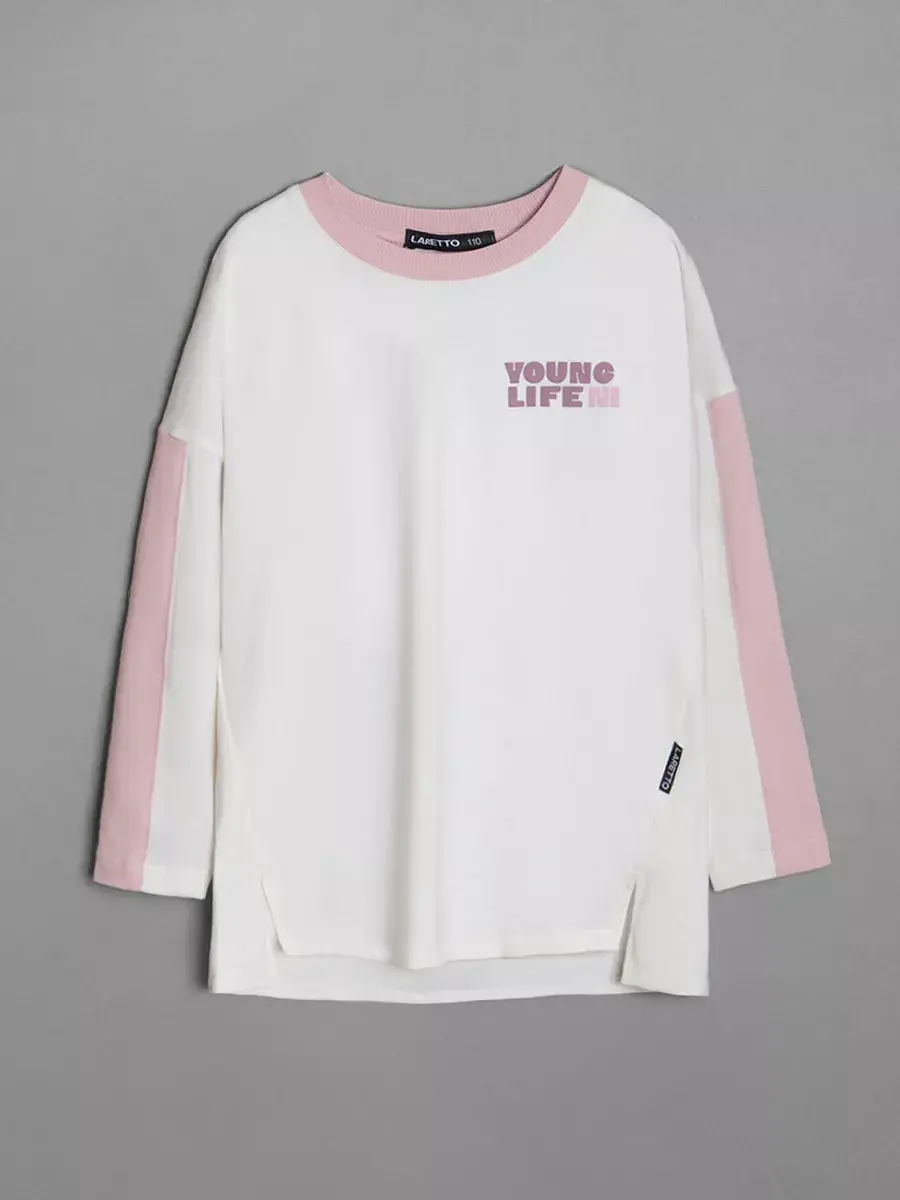 Лонгслив для девочки трикотажный от бренда LARETTO станет незаменимым атрибутом в гардеробе Вашего ребенка. Нарядная кофта с принтом выгодно дополнит любой look, будь то праздничное мероприятие или прогулка с друзьями. Детский свитшот подойдет для повседневной носки в садик, школу и в качестве одежды для дома. Модель идеальна не только для малышей, но и для подростков. Футболка с длинным рукавом выполнена из трикотажа Премиум качества, поэтому надолго сохранит первоначальный вид даже после длительного использования. Изделие оверсайз с разрезами по бокам хорошо садится по фигуре, не стесняя движений. Водолазка без горла школьная отлично сочетается с джинсами и юбками. Стильный дизайн и оригинальный принт создадут неповторимый образ для вашей маленькой модницы. Мы рекомендуем ориентироваться на замеры изделия, указанные в карточке товара, чтобы не ошибиться с размером. Выбирая вещи из нашей коллекции, будьте уверены, что дарите своей малышке не только качественную, но модную одежду, которая подчеркнет ее индивидуальность и выделит среди других!