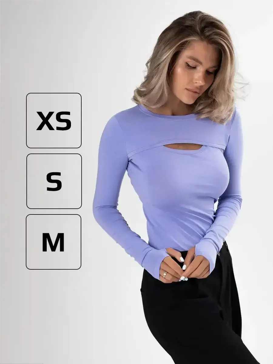 Лонгслив женский с вырезом на груди - это стильная одежда, которая станет незаменимой вещью в гардеробе каждой современной женщины! Изготовленный из качественного трикотажа, данный товар отличается высоким уровнем комфорта и стильным дизайном. Будь то повседневный образ, деловой наряд или даже вечерняя прогулка, кофта с вырезом на груди удачно подчеркнет Вашу индивидуальность и добавит шарма. Длинные рукава вырезом для пальца - хит этого сезона, они стильно дополняют любой вечерний или повседневный look!