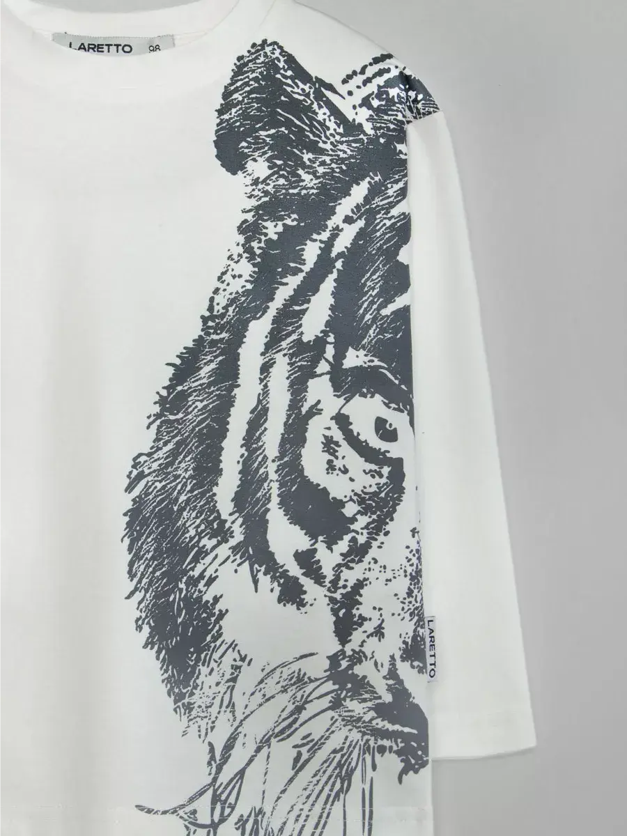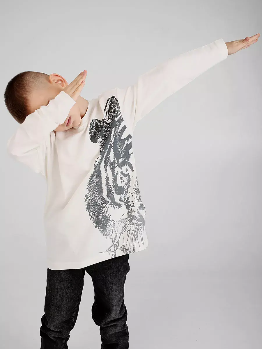 Лонгслив для мальчика от российского бренда LARETTO - это яркий и практичный элемент гардероба модника, который идеально подойдёт для осени и для школьных будней. Кофта с принтом тигра непременно привлечет внимание окружающих! Удобная одежда для мальчиков подходит как для повседневной носки, так и для особых случаев например дискотека в школе . Лонгслив для мальчика в школу и подростковый выполнен из мягкого трикотажа Премиум качества, который приятен к телу и обеспечивает комфортную посадку. В нем Ваш ребенок сможет свободно двигаться и чувствовать себя уверенно. Свитшот для мальчика подойдет не только для малышей, но и для подростков. Мальчишки всегда держатся в движении, и всегда нужно иметь вещи, которые готовы такому испытанию. Именно для активных детей создан этот лонгслив для мальчика. КЛонгслив детский в школу незаменима не только для школы, но и для прогулок с друзьями, занятий спортом или походов в детский садик. Благодаря стильному дизайну в виде серого тигра и качественному исполнению, водолазка без горла легко сочетается с брюками и штанами, позволяя создавать разные образы каждый день. Эта базовая кофта придется по вкусу даже самым требовательным детям.