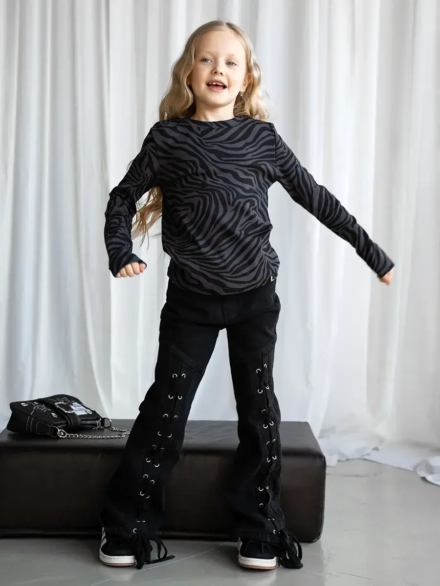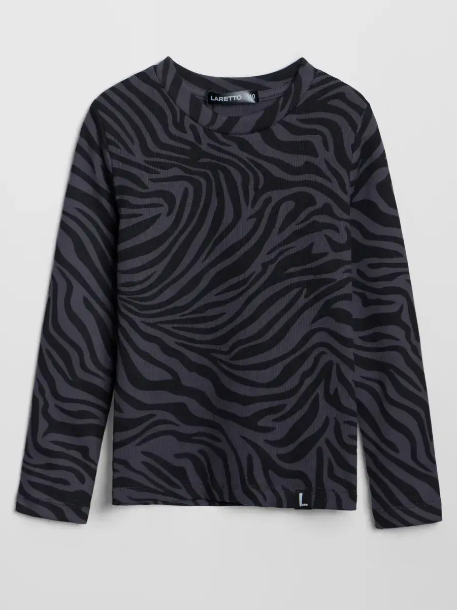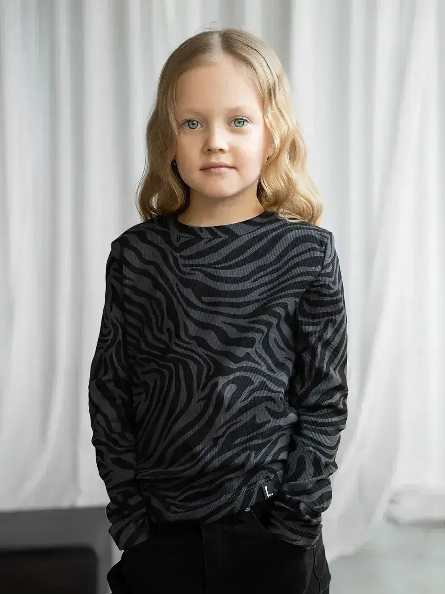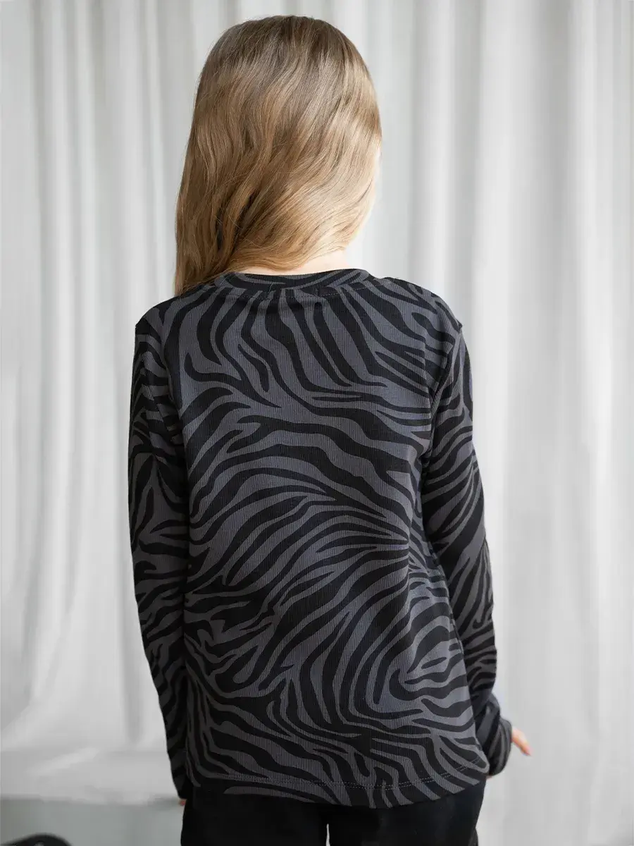Черный лонгслив для девочки с принтом зебра с длинным рукавом - незаменимая вещь для малышей, детей старшего возраста и подростков. Эта уникальная школьная кофта выполнена из высококачественного материала, который обеспечивает комфорт и свободу движений в течение всего дня. Элегантный рубчик добавляет текстурности и делает модель еще более привлекательной и незаменимой для школьных дней.