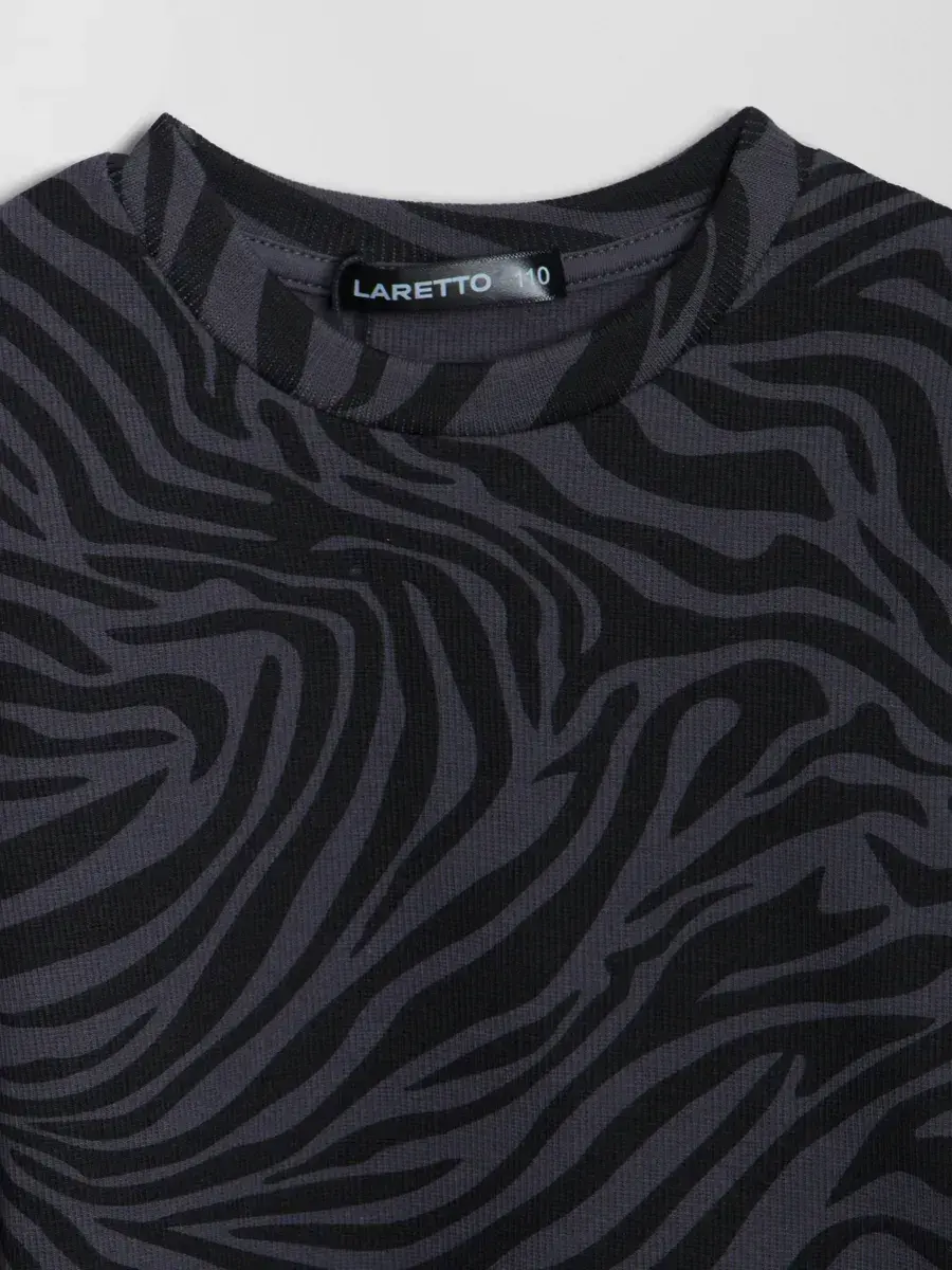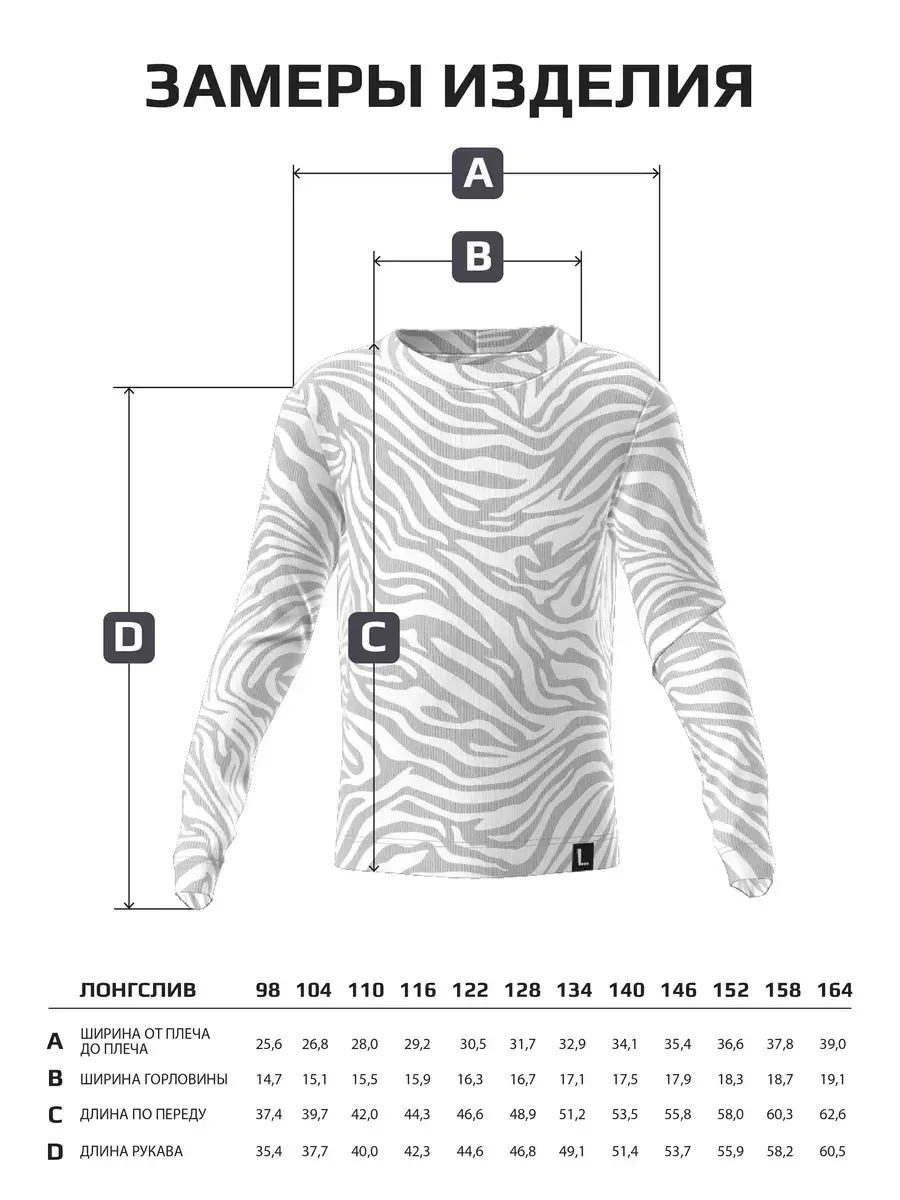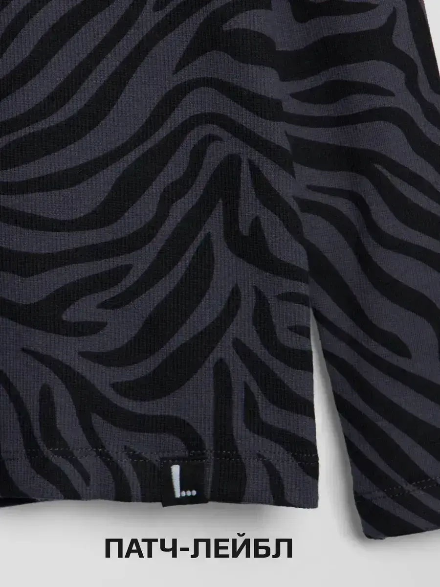 Лонгслив базовый детский идеально подходит как для повседневной носки, так и для особых случаев. Яркий принт зебра привлекает внимание и подчеркивает индивидуальность, а универсальный дизайн позволяет сочетать его с различными элементами гардероба.