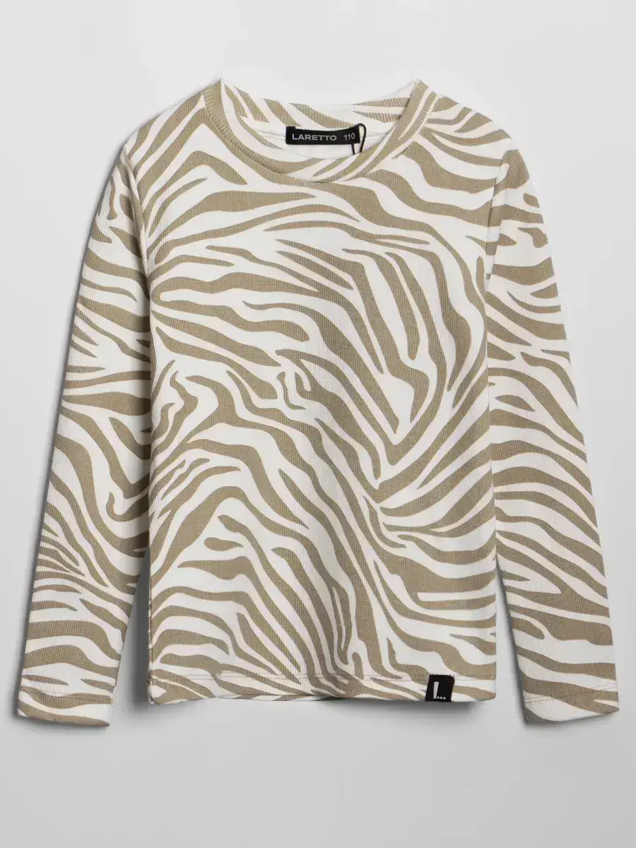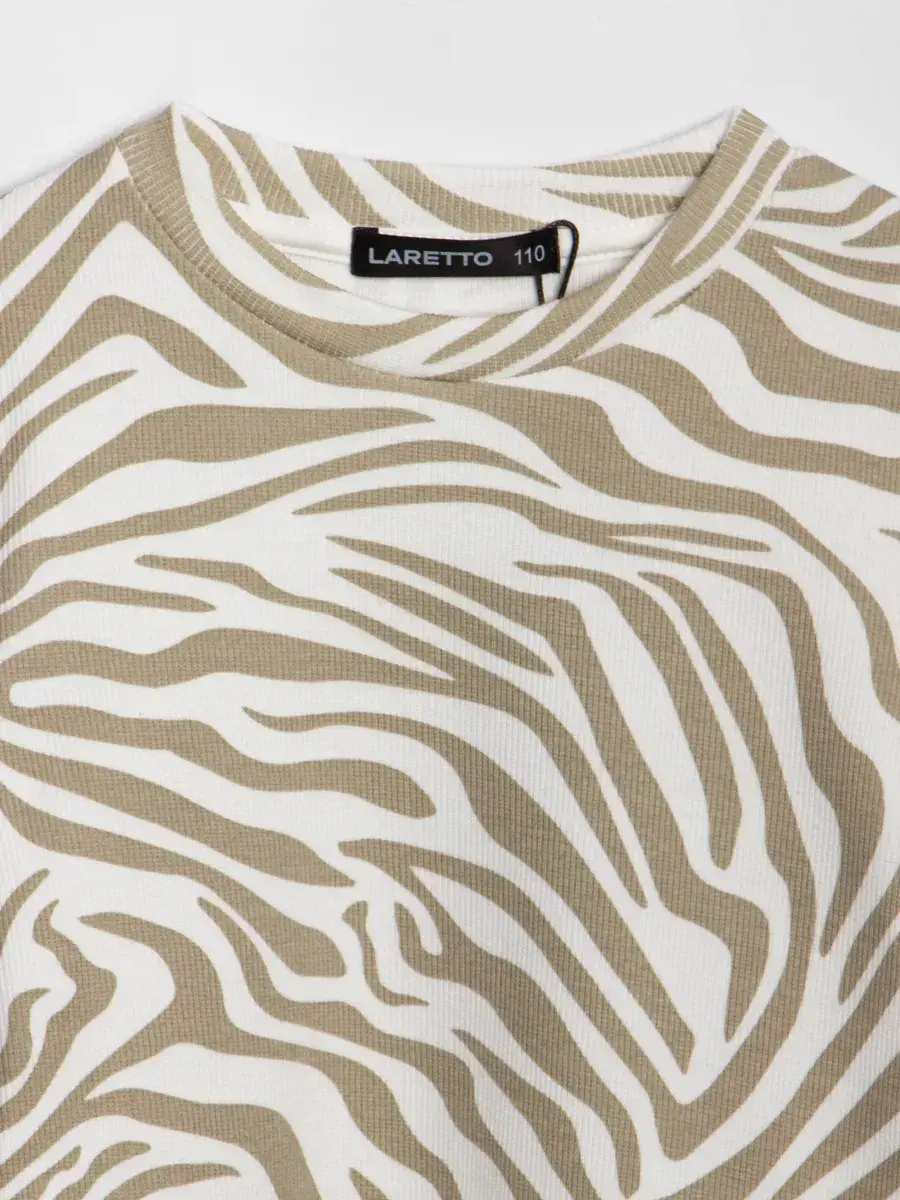 Бежевый лонгслив для девочки с принтом зебра с длинным рукавом - незаменимая вещь для малышей, детей старшего возраста и подростков. Эта уникальная школьная кофта выполнена из высококачественного материала, который обеспечивает комфорт и свободу движений в течение всего дня. Элегантный рубчик добавляет текстурности и делает модель еще более привлекательной и незаменимой для школьных дней.