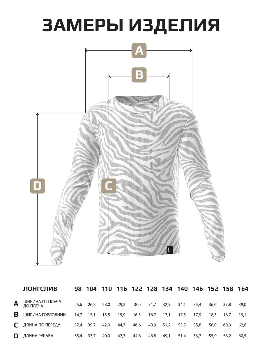Лонгслив базовый детский идеально подходит как для повседневной носки, так и для особых случаев. Яркий принт зебра привлекает внимание и подчеркивает индивидуальность, а универсальный дизайн позволяет сочетать его с различными элементами гардероба.