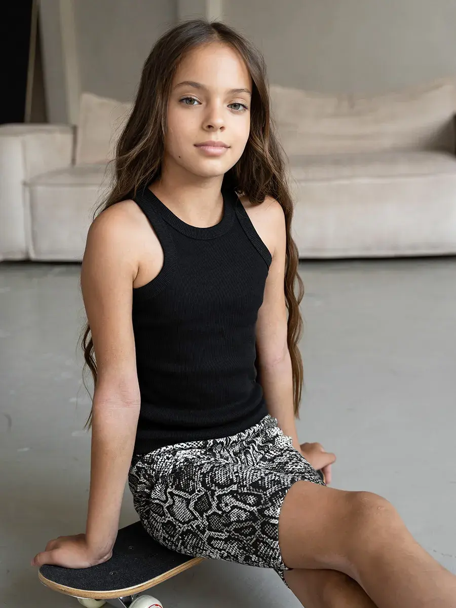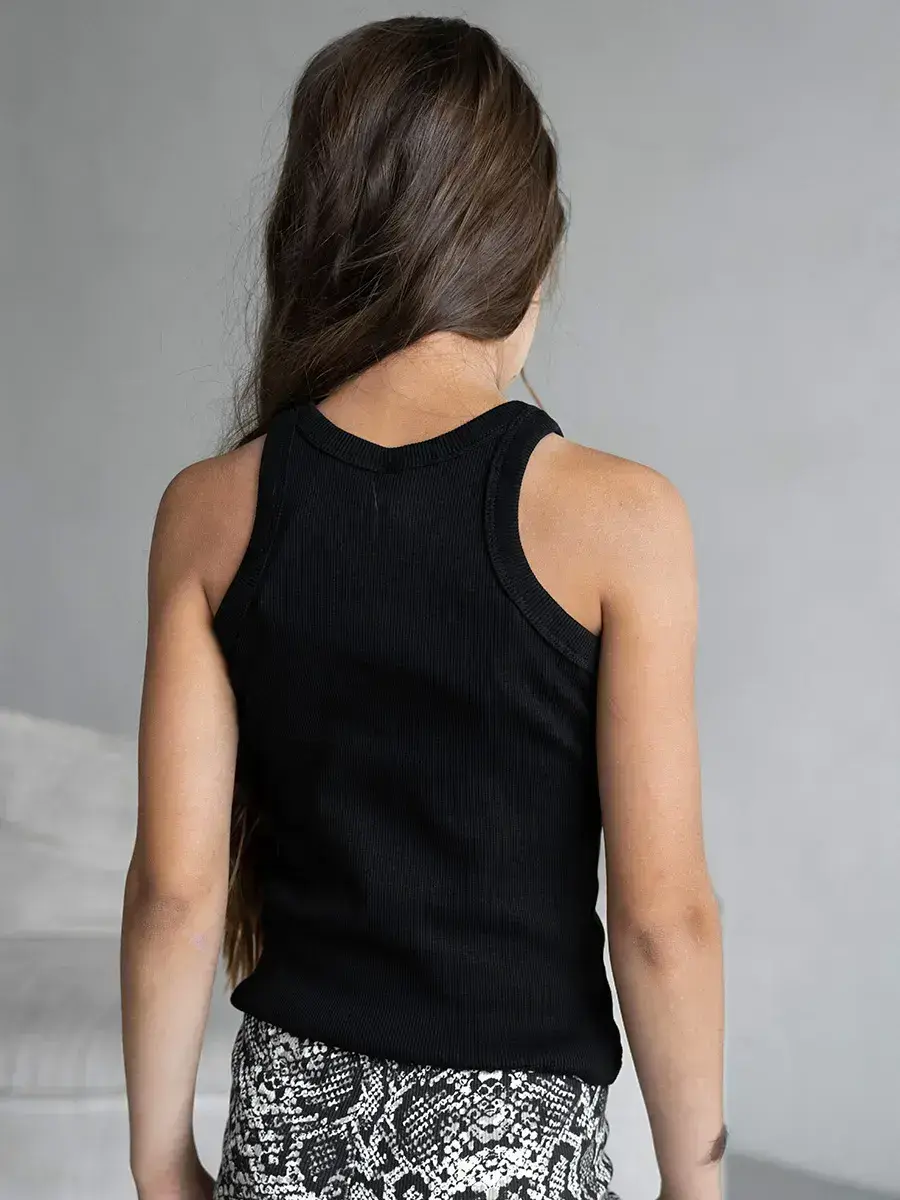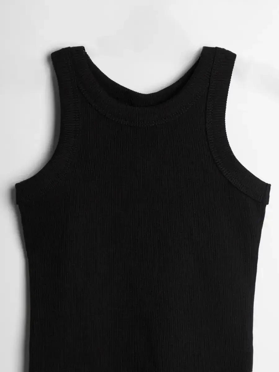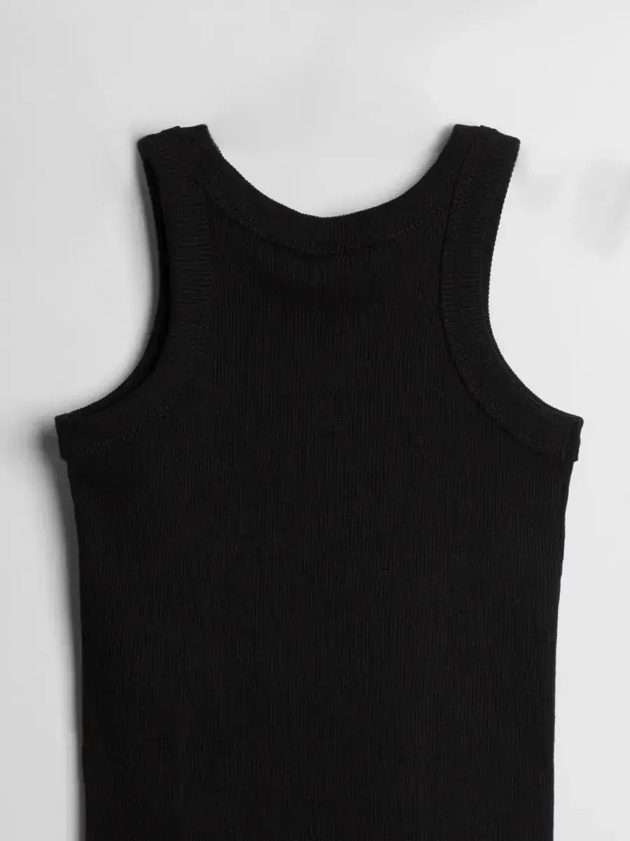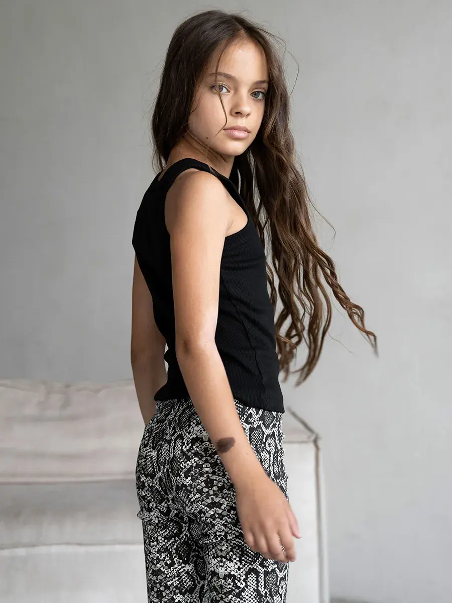 Идеальный вариант — топ для детского сада, прогулок и активных игр! В теплую погоду носите как самостоятельный элемент, а в холодное время года надевайте под свитер или кофту. Широкие бретели и круглый вырез обеспечивают максимальный комфорт, а черный цвет подчеркнет стиль вашей малышки.