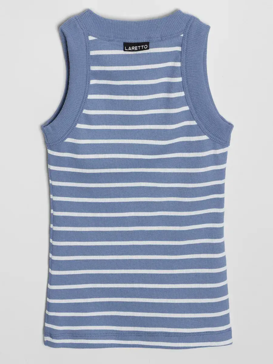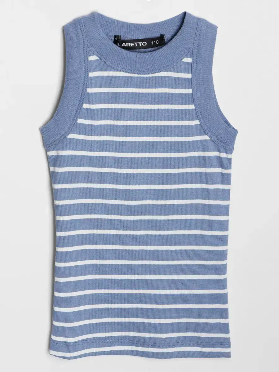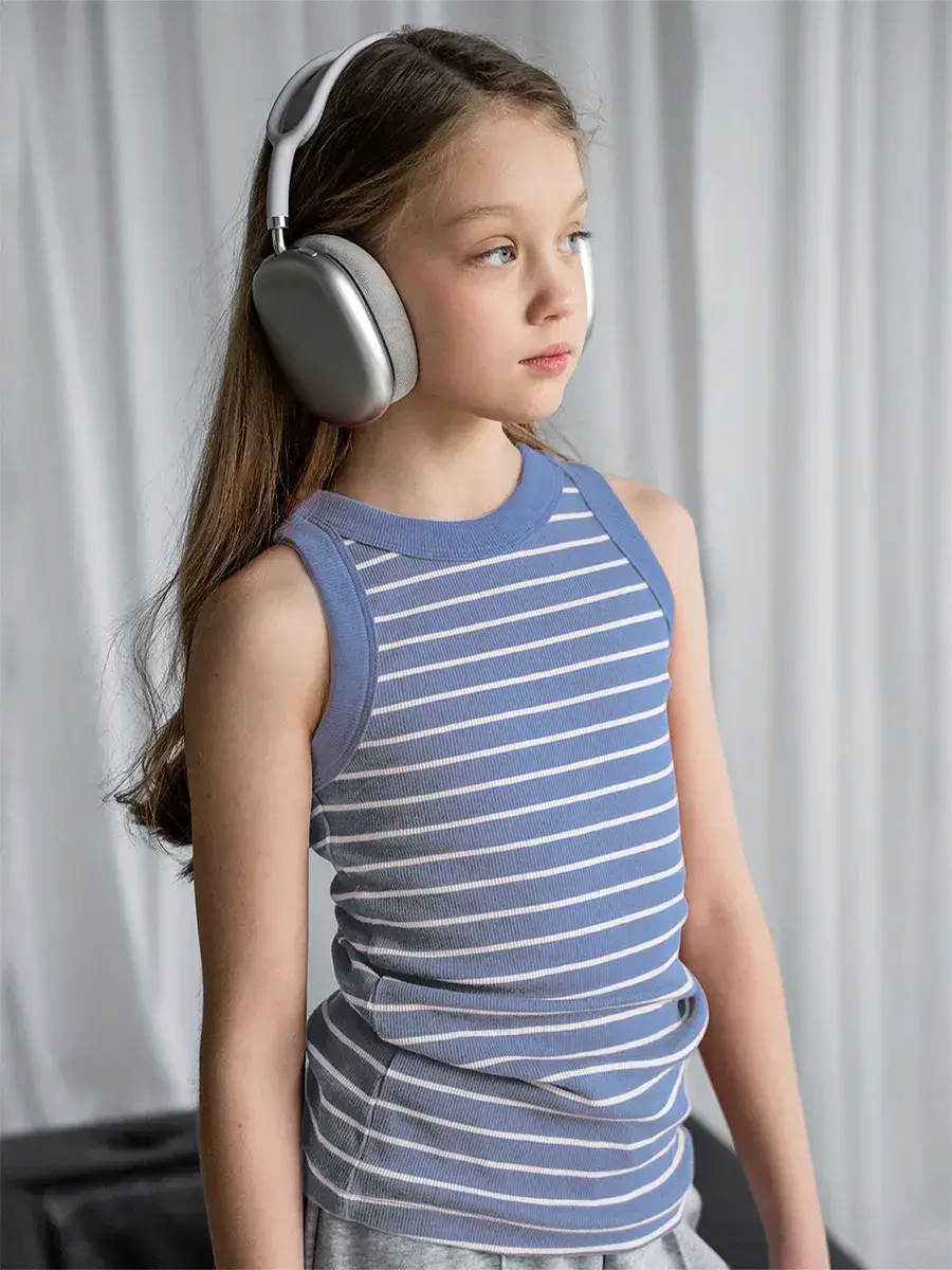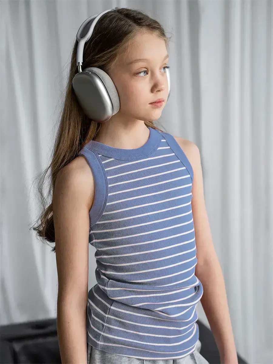 Стильный топ для девочки - идеальный выбор для теплых дней и создания модных повседневных образов. Голубой цвет с тонкими белыми полосками придает майке элегантный вид, подходящий для прогулок, занятий спортом и ношения в детском саду или школе. Удобный крой и мягкая ткань обеспечивают максимальный комфорт даже при активных движениях.
