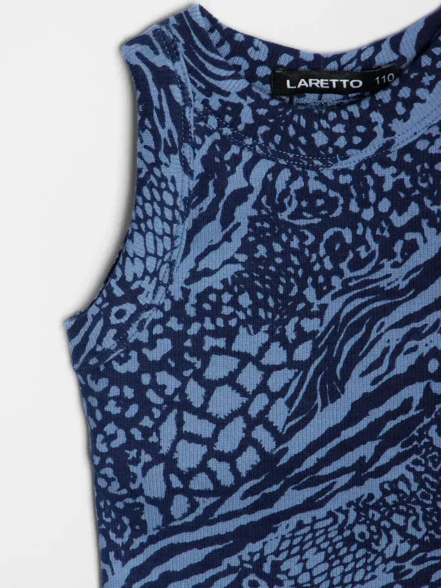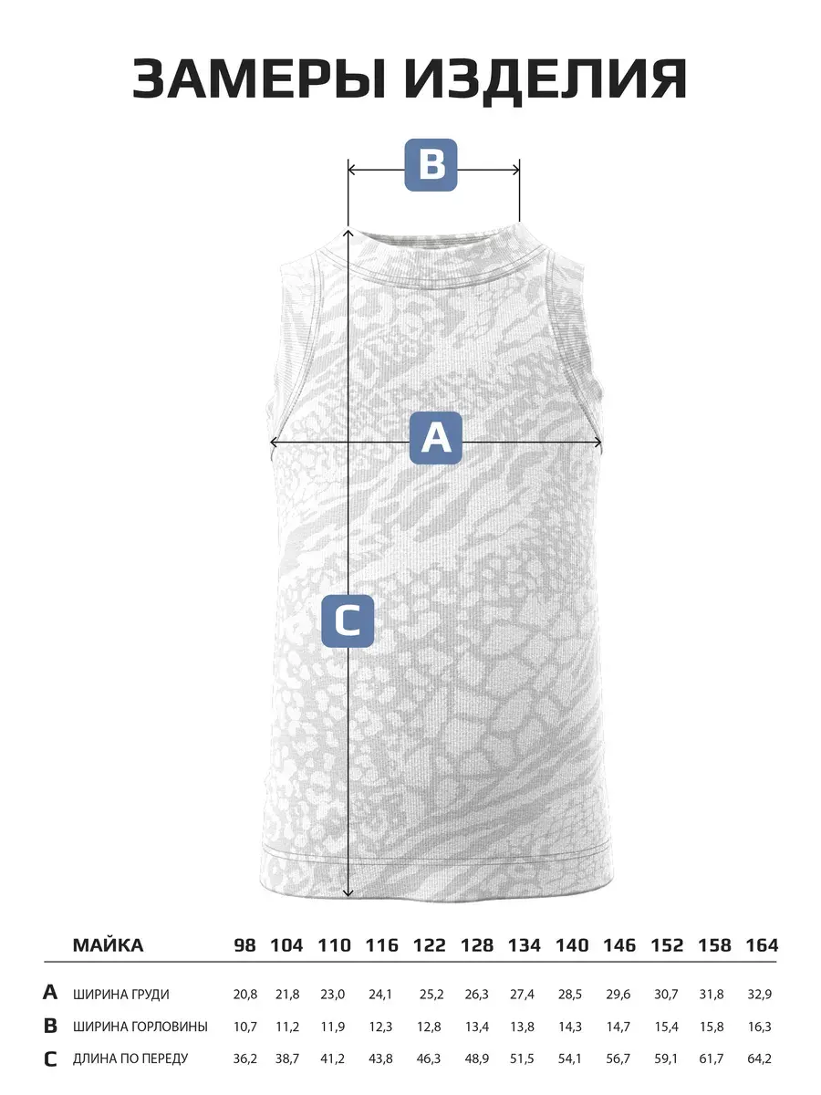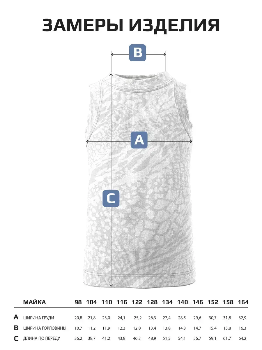 Главная особенность модели – насыщенный розовый узор с анималистическими мотивами, который делает майку стильной и выразительной. Такой дерзкий и современный дизайн подойдёт как для юных модниц, так и для подростков, позволяя подчеркнуть индивидуальность и создать смелый образ.