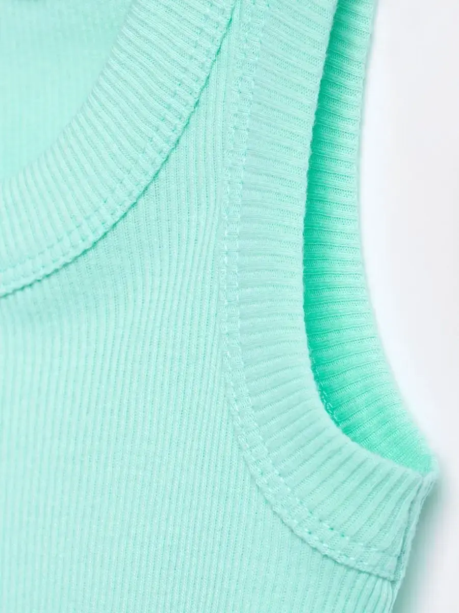 Эта детская майка из мягкого хлопкового трикотажа в рубчик станет незаменимой в гардеробе. Натуральная ткань позволяет коже дышать, а аккуратно обработанные швы не натирают и не вызывают раздражения. Благодаря эластичному материалу майка для девочки отлично садится по фигуре, не стесняя движений.