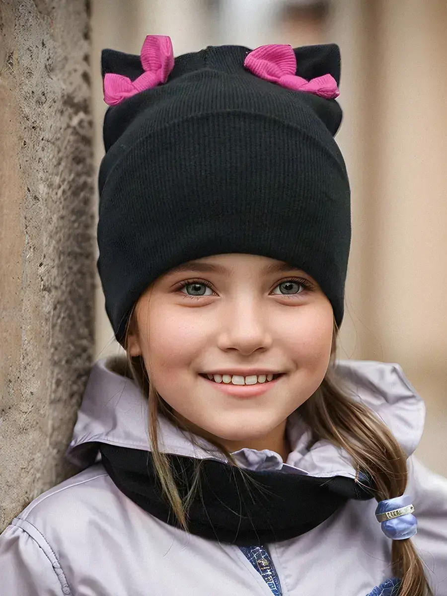 Шапка для девочки с ушками - это универсальная и практичная модель на осень и теплую зиму. Демисезонная детская шапка обязательно должна быть у каждой юной модницы и желательно в разных цветах! Милая шапочка с бантиками и ушками котика привнесет нежности в любой образ!