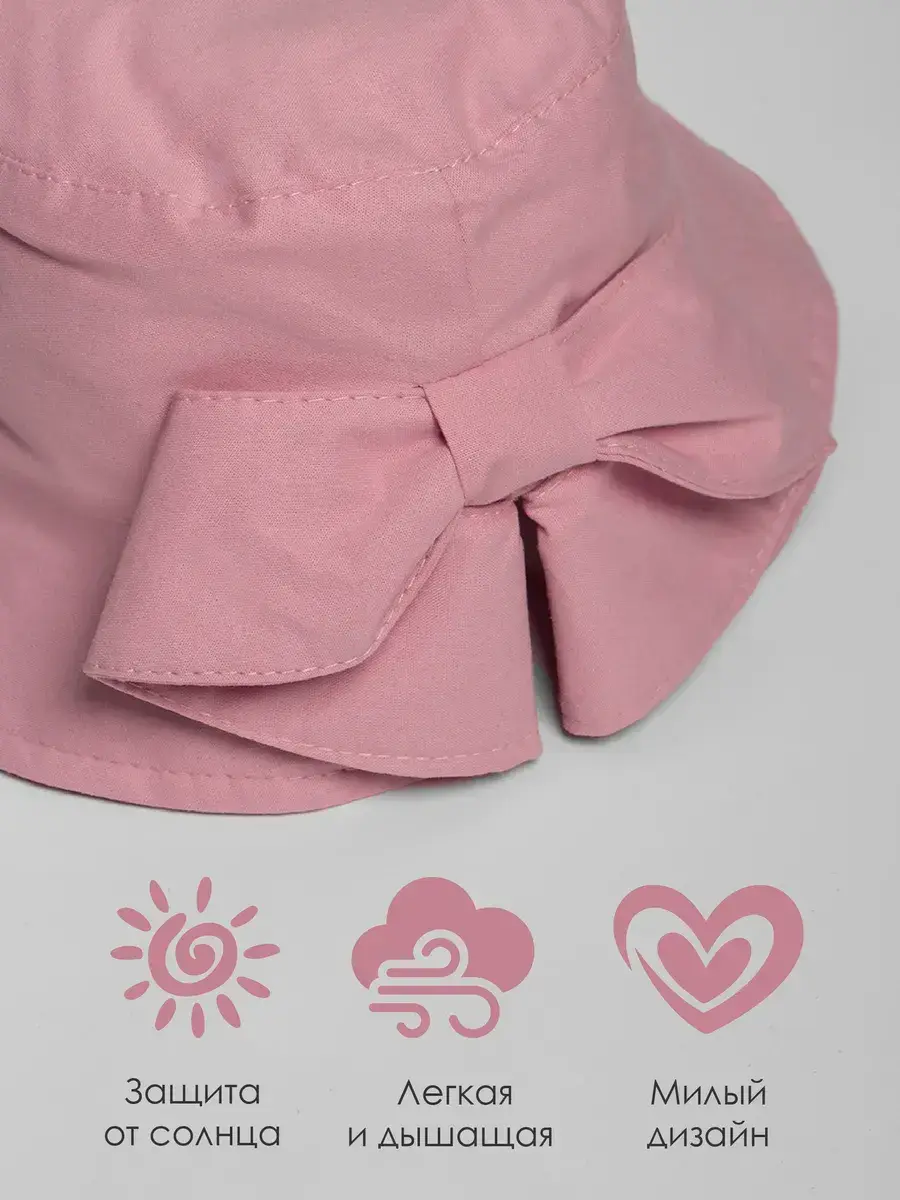ZO-016/00-0035410/Панама для девочки бант, пудровый