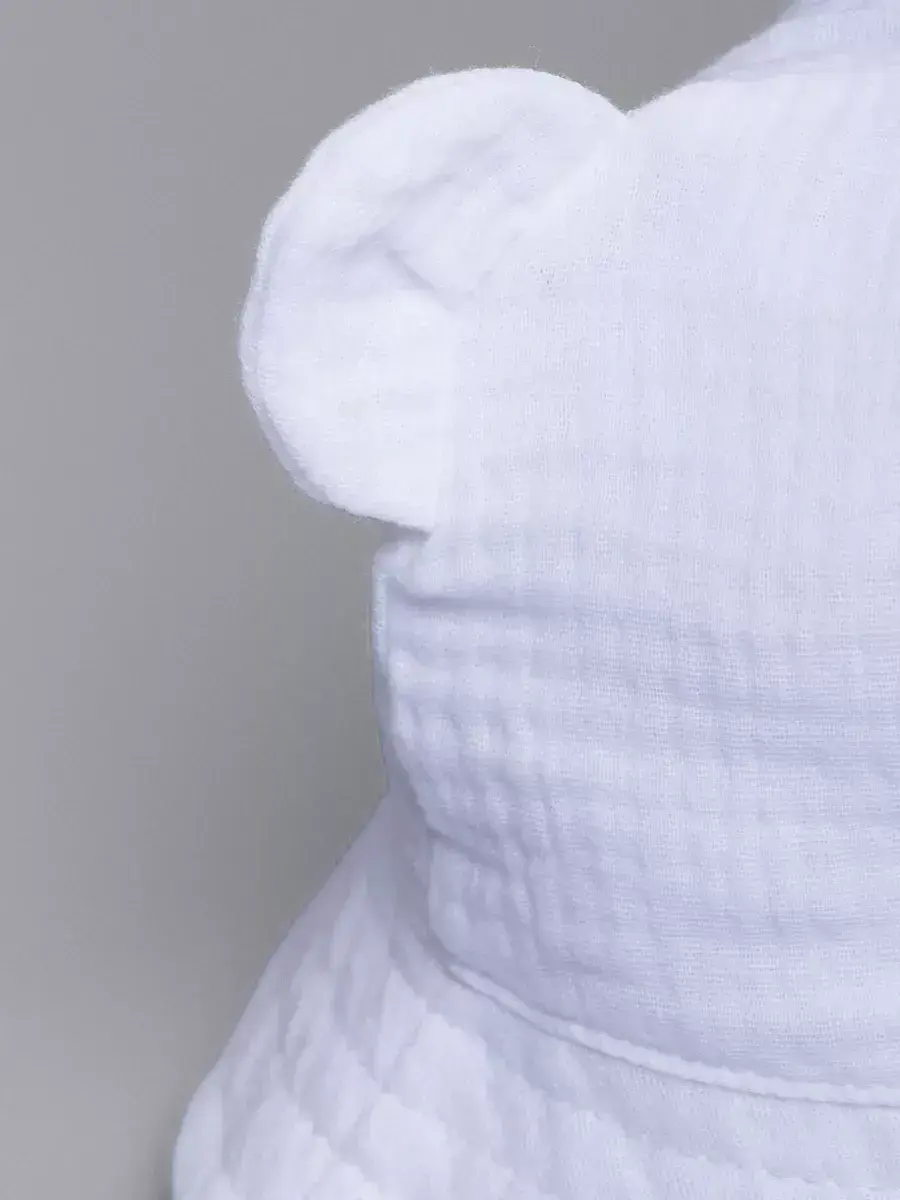 Яркая и стильная детская панама из муслина подчеркнет индивидуальность вашего малыша! Панама детская идеально подойдет как для мальчиков, так и для девочек. Шляпа от солнца с завязками и ушками мишки обеспечивает надежную защиту от вредного воздействия ультрафиолетовых лучей и перегрева на пляже. Легкая и дышащая гипоаллергенная ткань(100% хлопок) обеспечивает максимальный комфорт и удобство. Модель представлена в трендовых цветах сезона и легко сочетается с другими предметами гардероба. Мягкая панамка модная и удобная, незаменима для жары - идеальный аксессуар для отдыха, похода и спорта. Панамки лучше выбрать по размерной сетке, чтобы она не сползала на глаза ребенку, не сдавливала и не слетала во время ветра. Изделие максимально уютно, поля всегда можно отрегулировать, подвернув так, как нравится ребенку. Панамка муслиновая - это трендовая вещь пригодится в отпуске на море, пляже, поездок, обязательна для прогулок. Элегантный дизайн от российского бренда Русбубон делает этот товар отличным подарком к любому празднику. Приобретите этот головной убор вместе с футболкой или пляжной туникой в нашем магазине-приятных покупок!