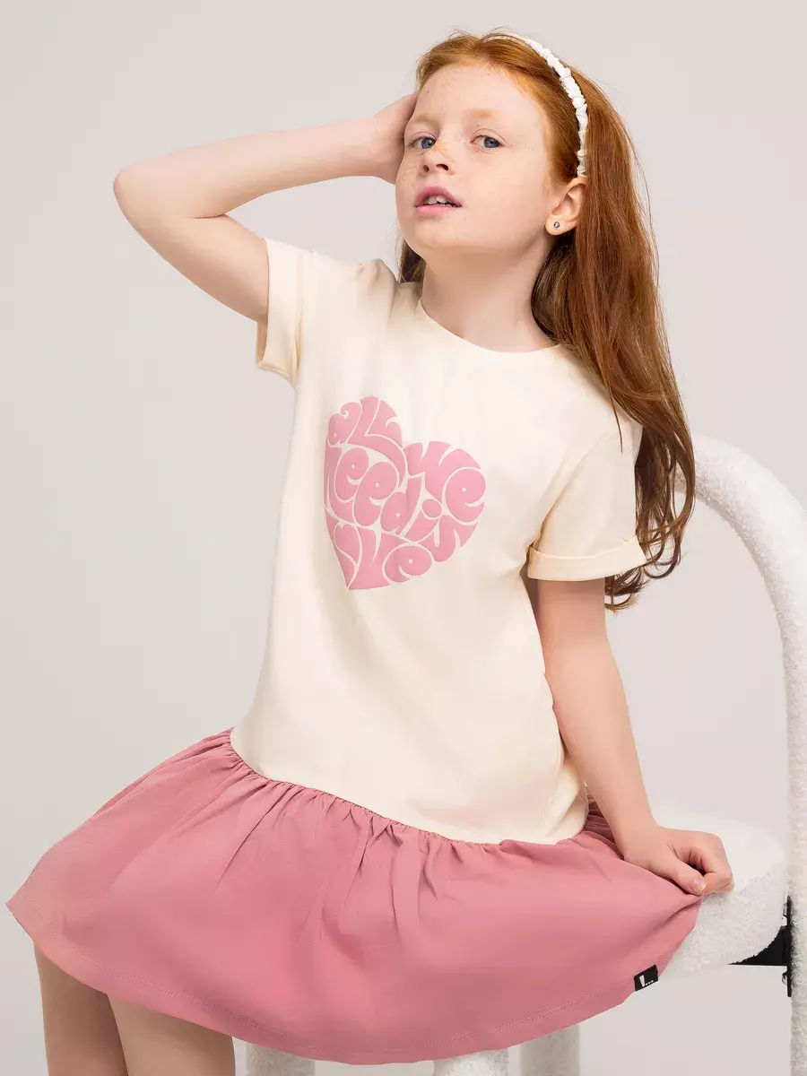 Легкое и стильное платье для девочки – отличный выбор для весенне-летнего сезона. Оно выполнено из мягкого трикотажа, который обеспечивает комфорт и свободу движений в течение всего дня. Короткий рукав делает платье детское идеальным для теплой погоды, а удобный крой позволяет ребенку чувствовать себя комфортно во время активных игр и прогулок.