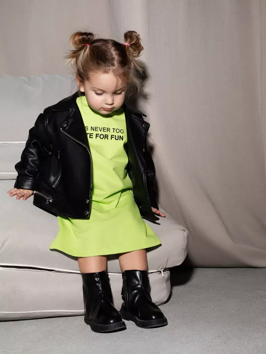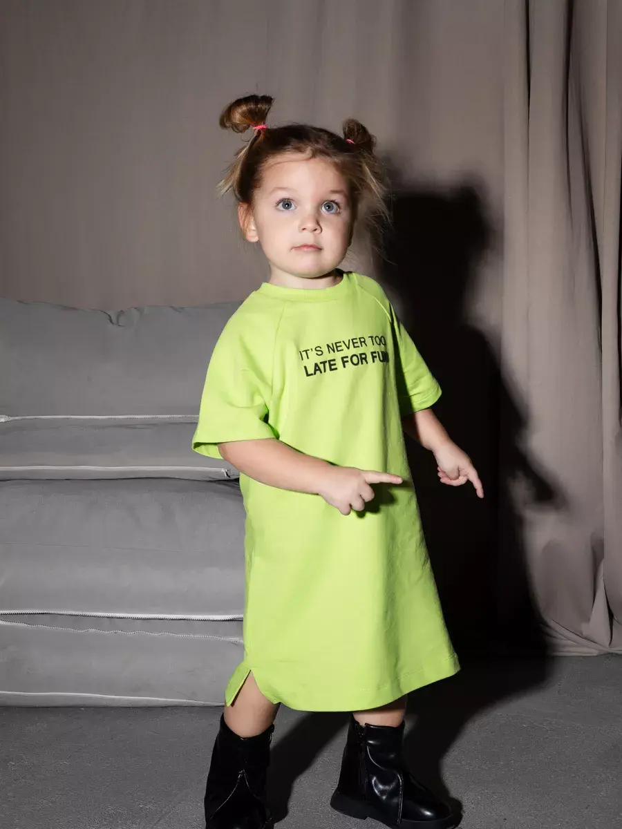 Свободный крой оверсайз обеспечивает хорошую посадку на фигуре и не стесняет движений. Благодаря отсутствию застежек девочки смогут одеваться самостоятельно.