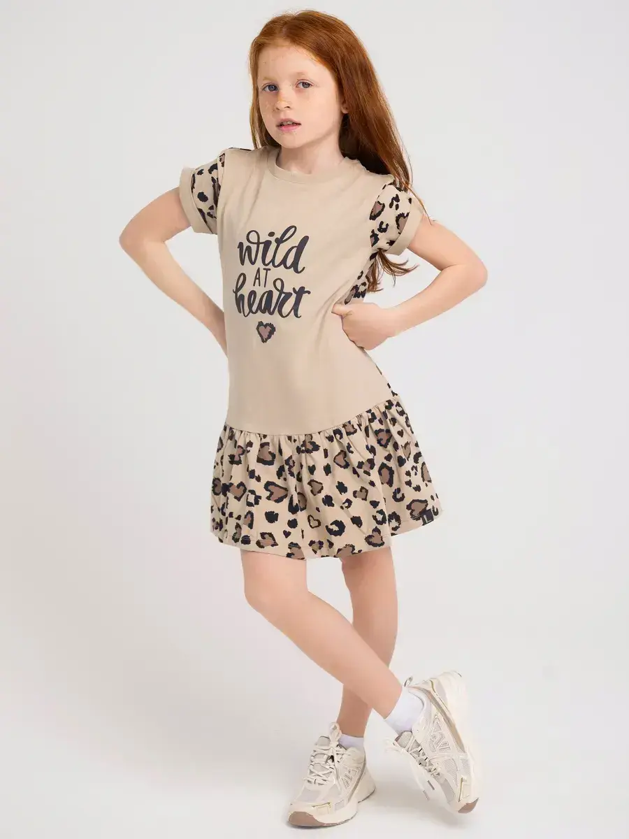 Легкое и стильное платье для девочки – отличный выбор для весенне-летнего сезона. Оно выполнено из мягкого трикотажа, который обеспечивает комфорт и свободу движений в течение всего дня. Короткий рукав делает платье детское идеальным для теплой погоды, а удобный крой позволяет ребенку чувствовать себя комфортно во время активных игр и прогулок.