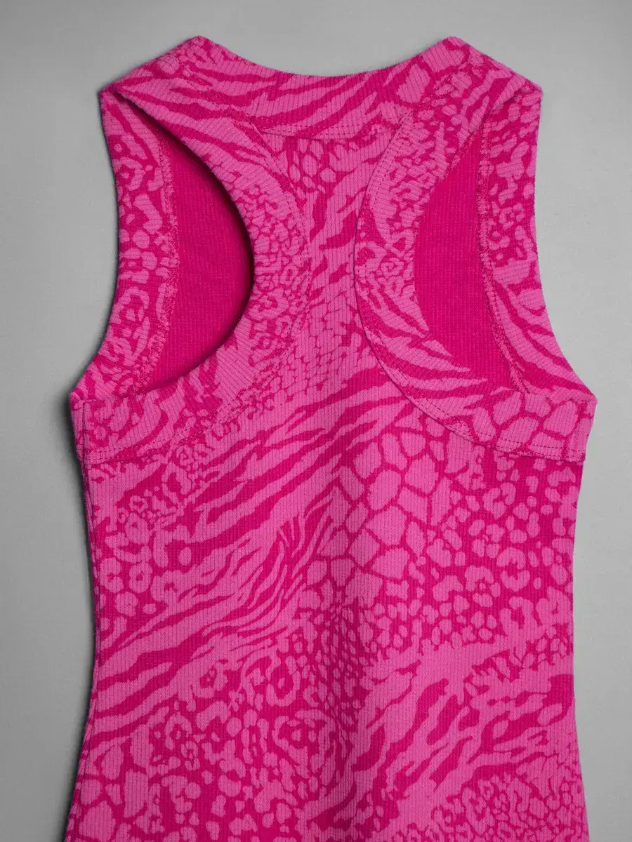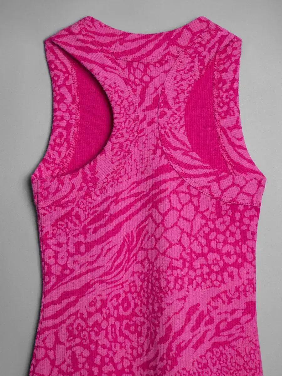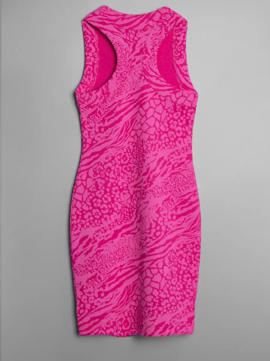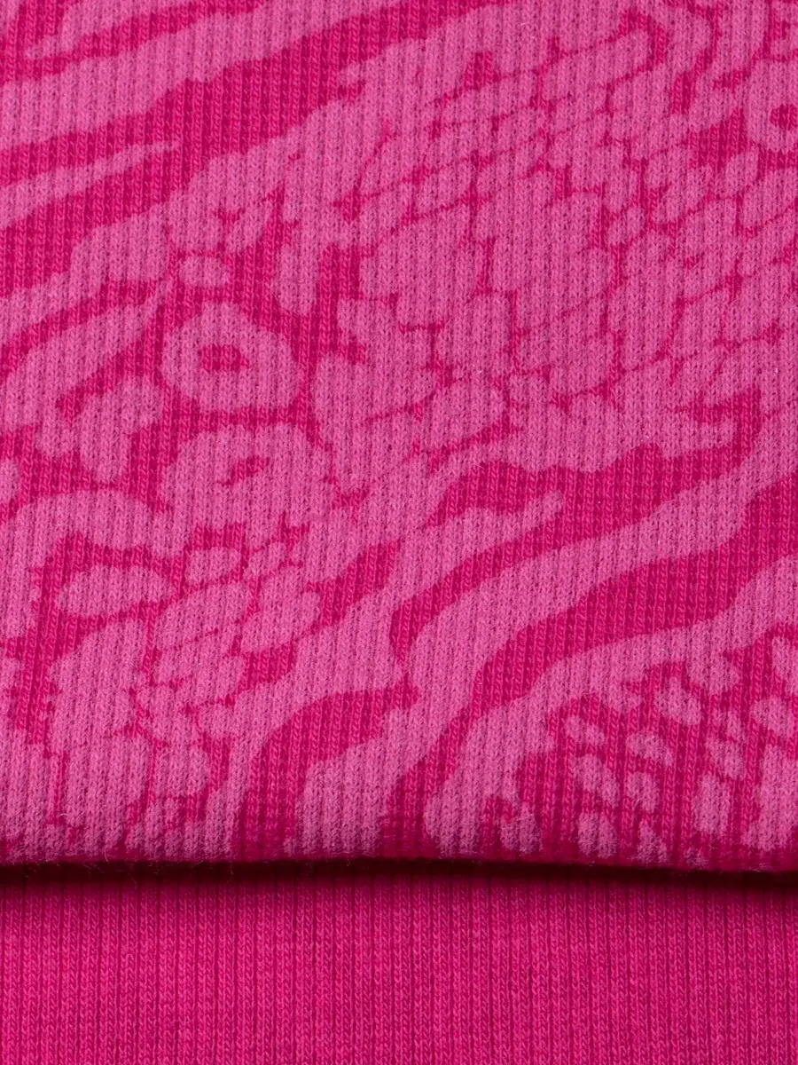 Смелый ярко-розовый узор с анималистическими мотивами придает модели современный и дерзкий вид. Это платье станет настоящим акцентом гардероба, подчеркивая индивидуальность и стиль вашей девочки. Универсальный дизайн делает его идеальным для любого времени года – оно будет гармонично сочетаться с различными аксессуарами и обувью.
