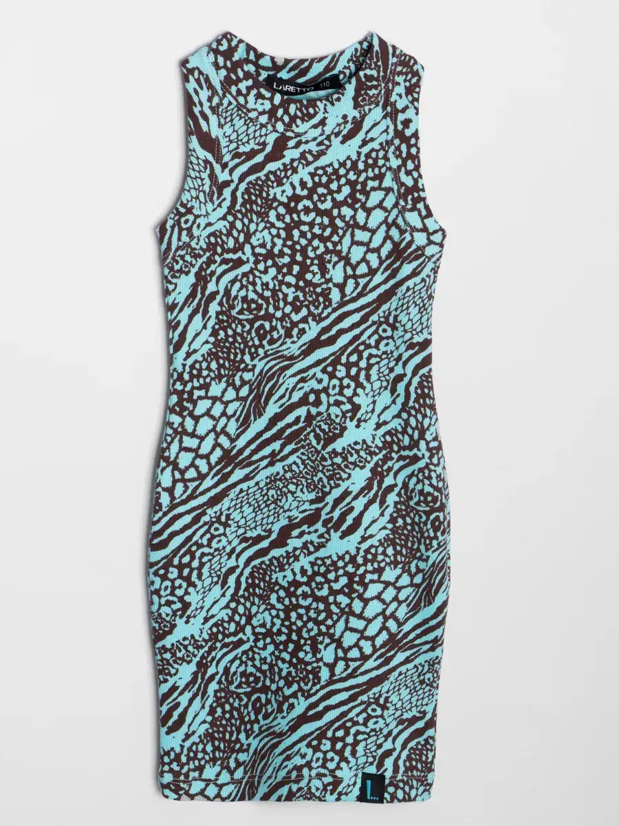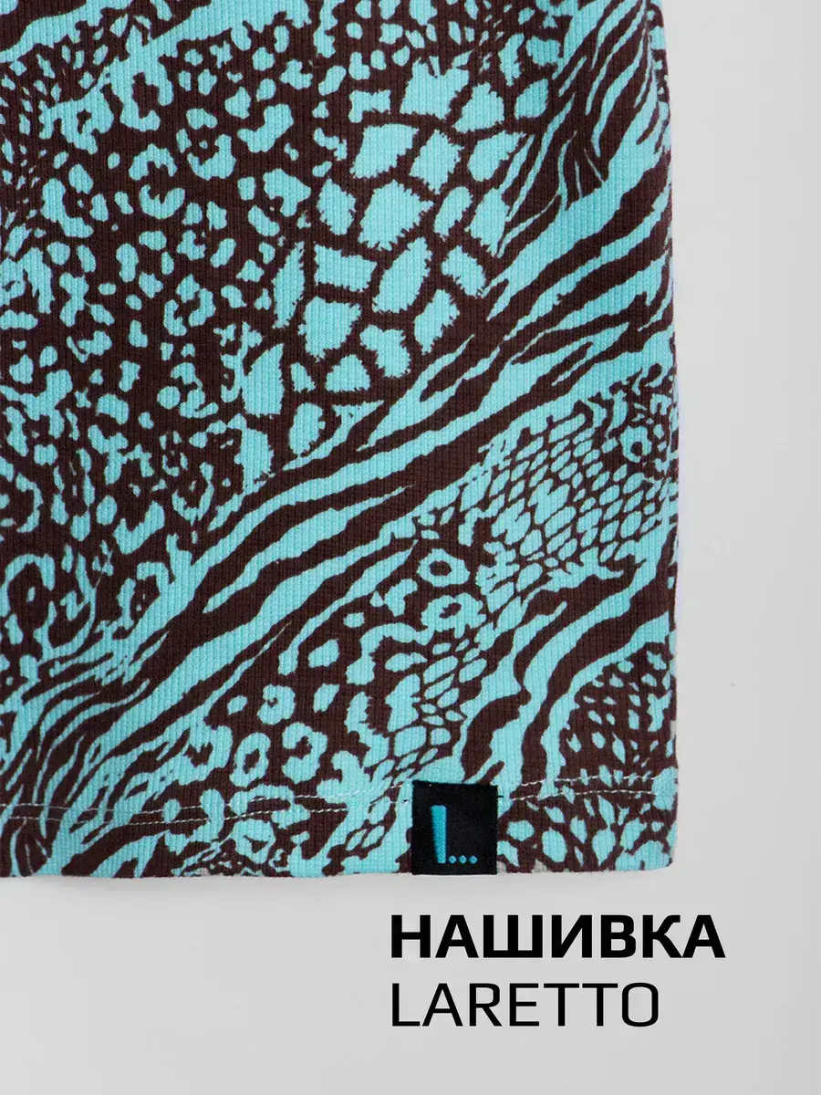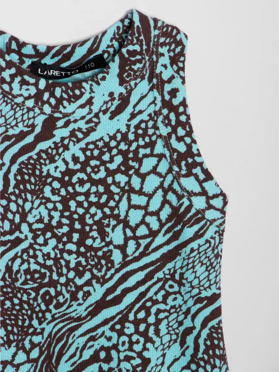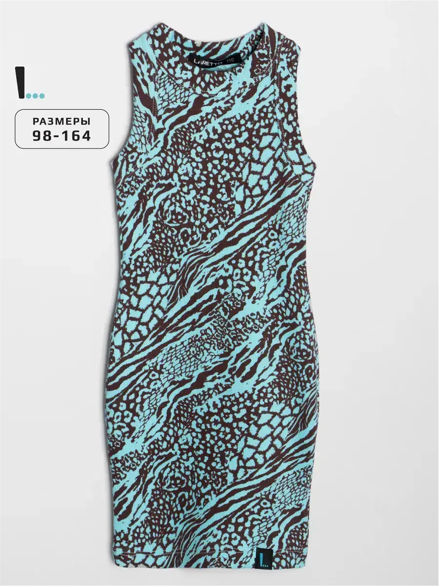 Смелый черно-голубой узор с анималистическими мотивами придает модели современный и дерзкий вид. Это платье станет настоящим акцентом гардероба, подчеркивая индивидуальность и стиль вашей девочки. Универсальный дизайн делает его идеальным для любого времени года – оно будет гармонично сочетаться с различными аксессуарами и обувью.
