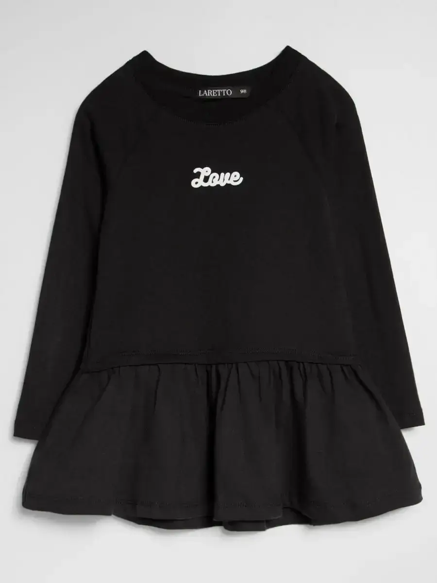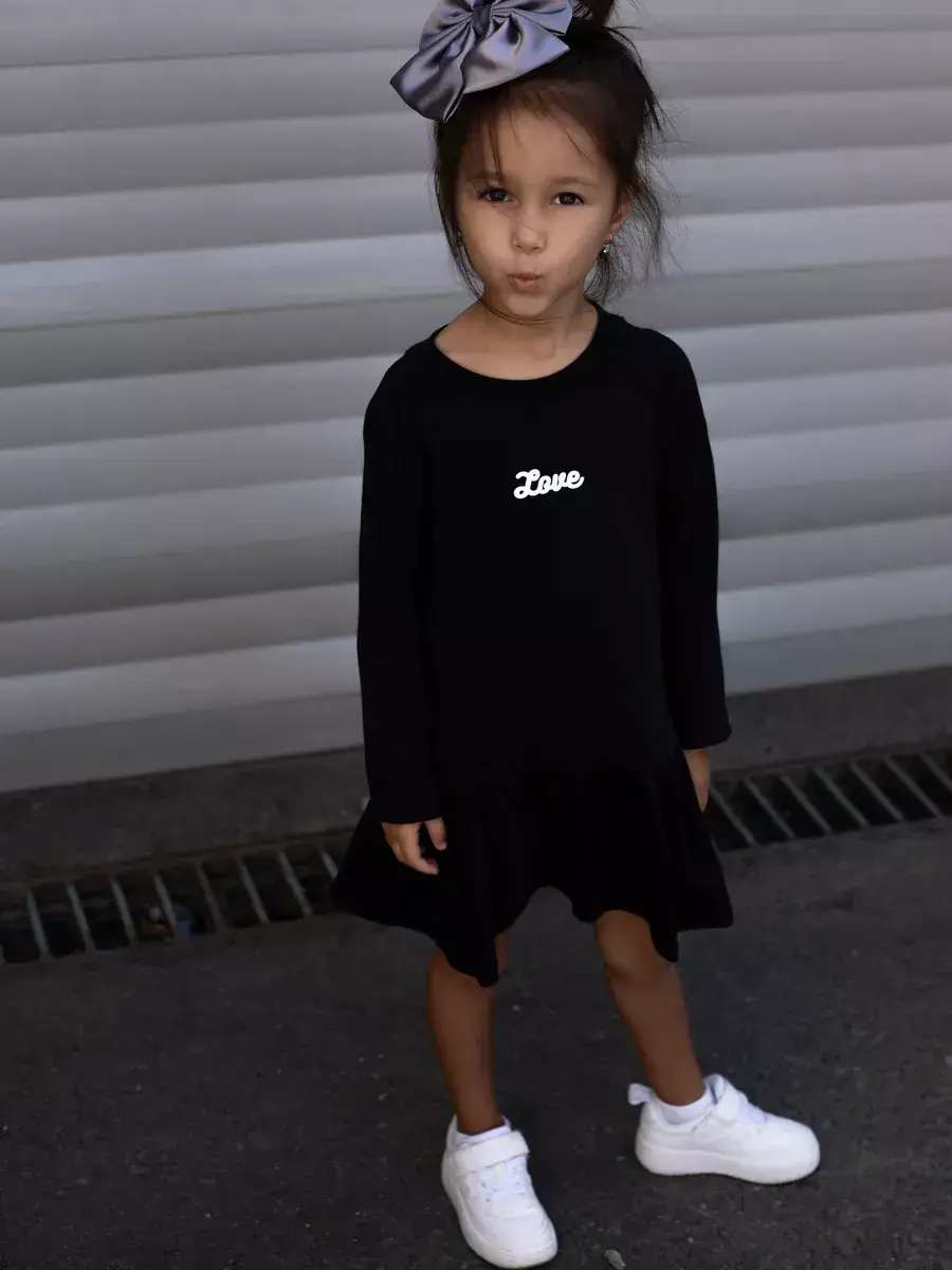 Платье для девочки трикотажное станет отличным дополнением в гардеробе маленькой принцессы! Оно идеально подходит для повседневного ношения в садик, а также для торжественных мероприятий. Платье с длинным рукавом выполнено из трикотажа премиум-качества, поэтому очень комфортное и удобное. Оно хорошо подходит для девочек различных возрастов: маленьких, средних и старших. Модное платье детское садится прекрасно на фигуру, не стесняя движений благодаря легкому оверсайзу, а воланы по низу добавляют игривости. Уникальный дизайн, мягкая расцветка и принты в виде надписей делают платье одновременно праздничным и универсальным. Ваша дочка будет выглядеть элегантно и изящно, вызывая восхищение окружающих!