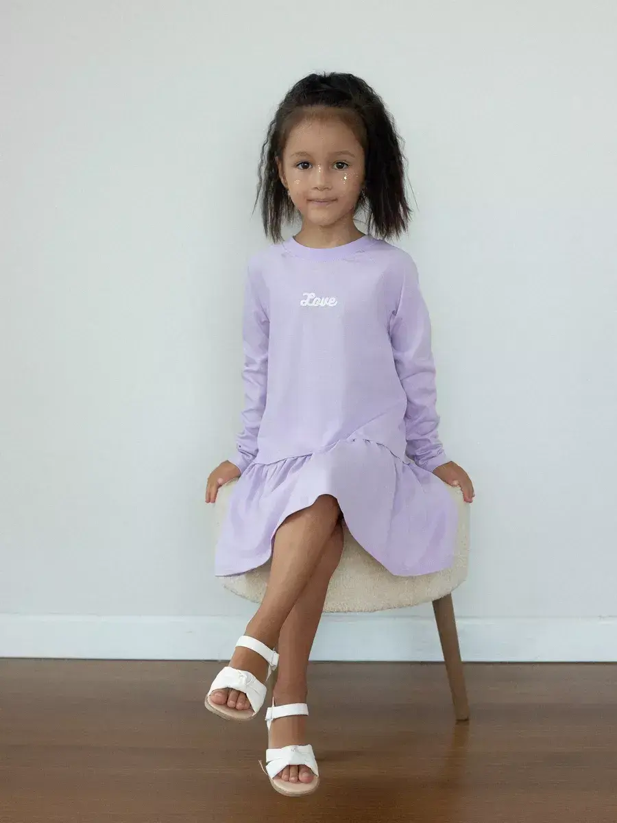 Платье для девочки трикотажное станет отличным дополнением в гардеробе маленькой принцессы! Оно идеально подходит для повседневного ношения в садик, а также для торжественных мероприятий. Платье с длинным рукавом выполнено из трикотажа премиум-качества, поэтому очень комфортное и удобное. Оно хорошо подходит для девочек различных возрастов: маленьких, средних и старших. Модное платье детское садится прекрасно на фигуру, не стесняя движений благодаря легкому оверсайзу, а воланы по низу добавляют игривости. Уникальный дизайн, мягкая расцветка и принты в виде надписей делают платье одновременно праздничным и универсальным. Ваша дочка будет выглядеть элегантно и изящно, вызывая восхищение окружающих!