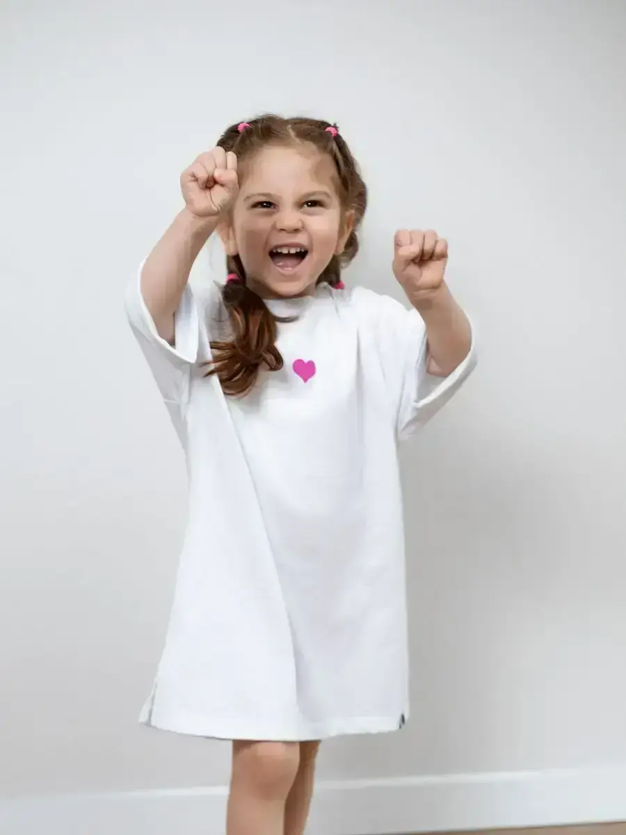 Свободный крой оверсайз обеспечивает хорошую посадку на фигуре и не стесняет движений. Благодаря отсутствию застежек девочки смогут одеваться самостоятельно.