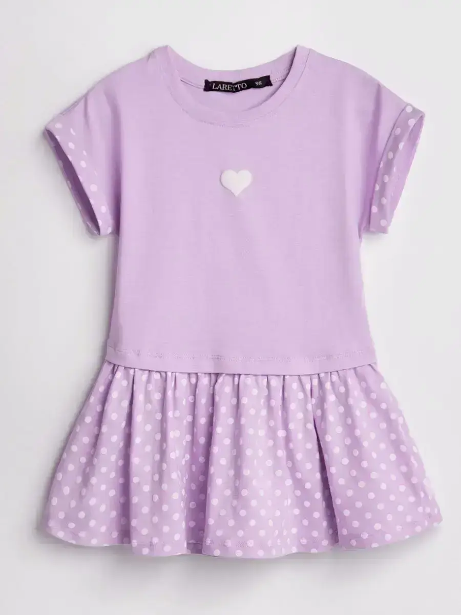 Платье для девочки от бренда LARETTO обязательно должно быть в гардеробе каждой маленькой модницы! Детское платье выполнено из хлопкового трикотажа Премиум качества. Свободный крой с коротким рукавом и заниженной талией не стесняет движений во время активных игр, а пышный волан в горошек добавляет игривости. Модный принт придает индивидуальности и дополняет образ! Платье подойдет не только для повседневной носки, с ним можно легко собрать праздничный look, дополнив красивым ободком или бижутерией. Стильное однотонное платьице для девочек незаменимо в летние жаркие дни. Большой размерный ряд рассчитан не только для малышей, но и для подростков. Актуальные расцветки, современный дизайн, идеальный крой, качественная ткань - ведь только такой должна быть детская одежда! Для того чтобы платье трикотажное радовало Вашего ребенка дольше, очень важно соблюдать рекомендации по уходу за изделием (бережная стирка при t не более 30С). В каталоге нашего магазина Вы найдете много детских вещей на любой сезон! Приятных Вам покупок!