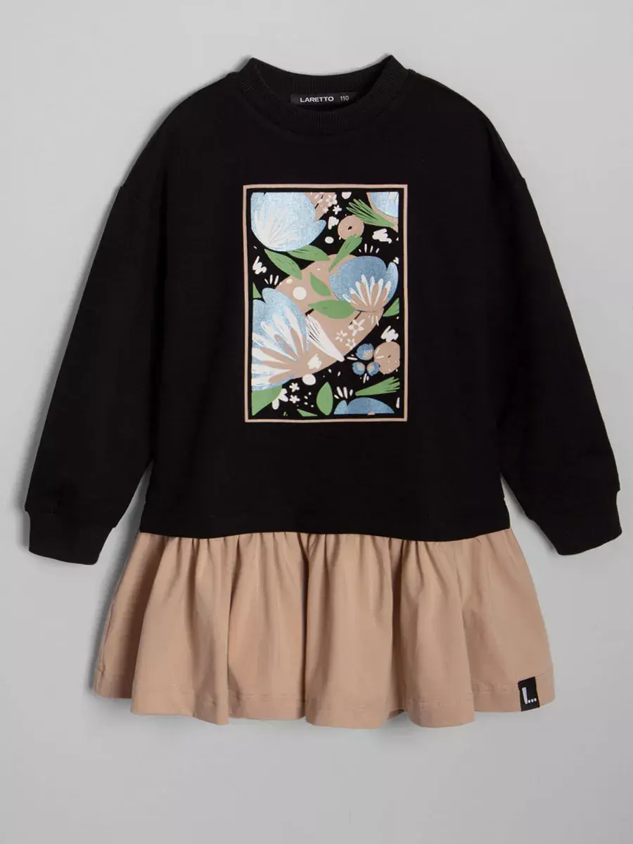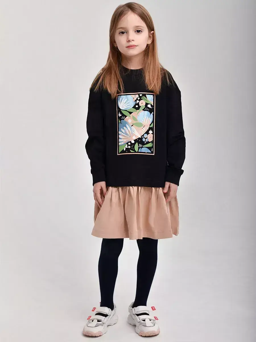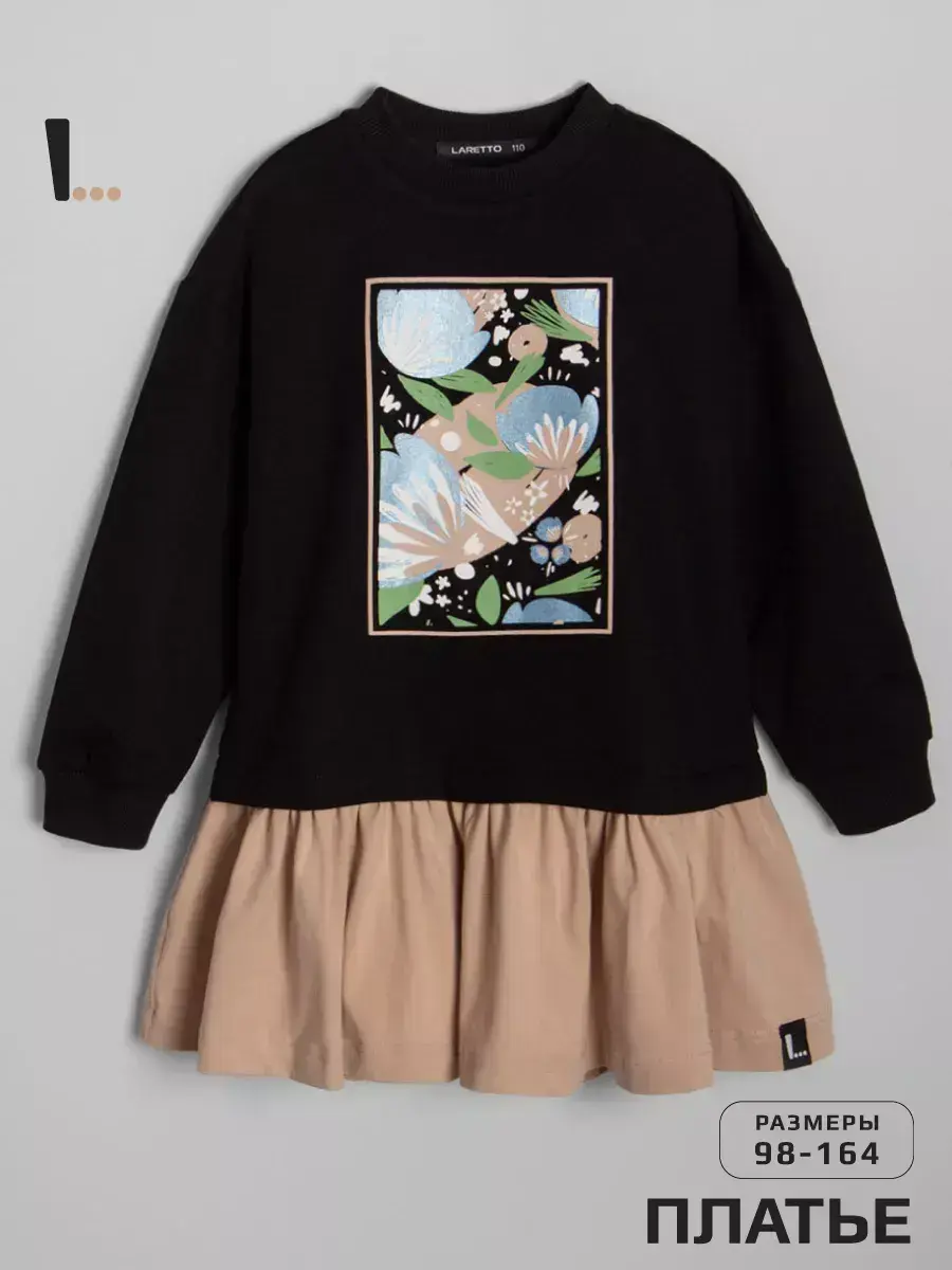 Стильное оверсайз платье свитшот для девочки от бренда LARETTO станет прекрасным повседневным вариантом. Модель детского платья выполнена из футера 2-х нитки с авторским уникальным принтом, а округлая горловина и манжеты - из эластичного трикотажа. Она очень практична и универсальна как на каждый день, так и для праздничных мероприятий. Платье-толстовка с длинными рукавами для девочек актуально в любой сезон для школы и садика. Свободный крой изделия не сковывает движений и хорошо подойдет для занятий спортом и танцами. Платье миди для малышей с имитацией свитшота прекрасно сочетается с классической и спортивной обувью. Расклешенный низ добавляет одновременно игривости и элегантности образу. Молодежный дизайн понравится и девочке подростку, так как его легко стилизовать различными аксессуарами. Пышная юбка и верх оверсайз идеально садятся на любую детскую фигуру, а плотная, но мягкая ткань отлично держит форму. Чтобы трикотажное платье-худи радовало Вас дольше, очень важно соблюдать рекомендации по уходу (бережная стирка при t не более 30С). Приятных Вам покупок!