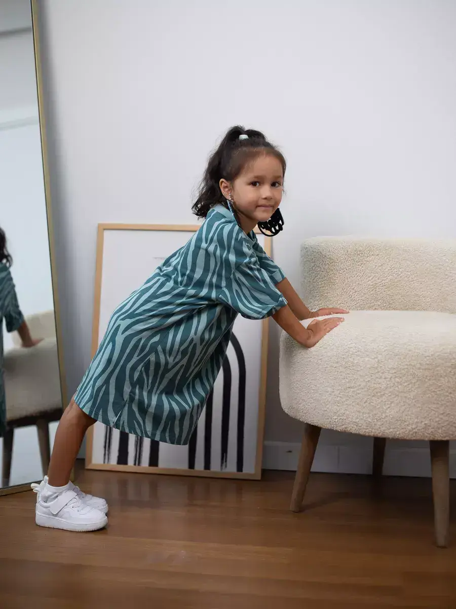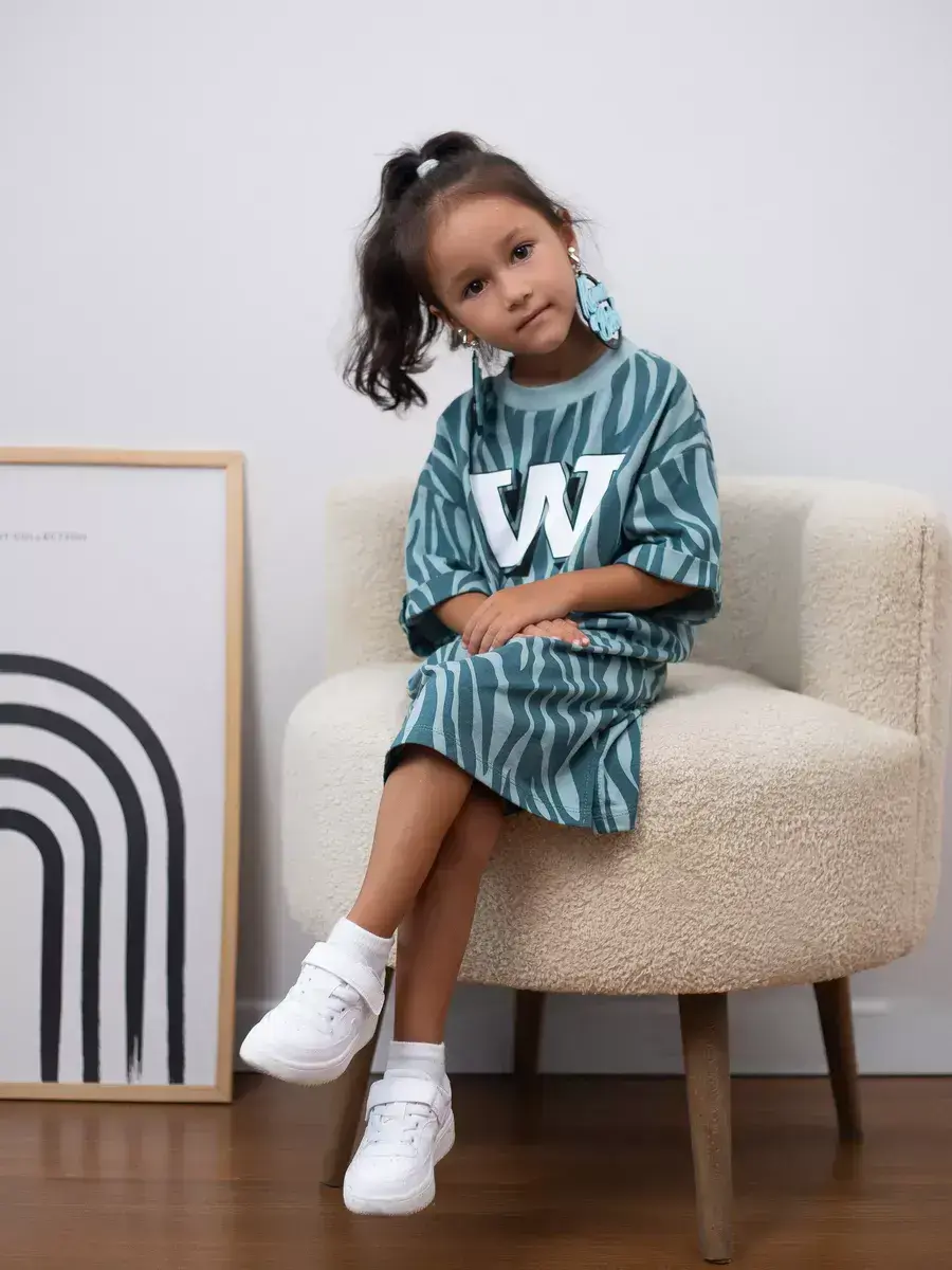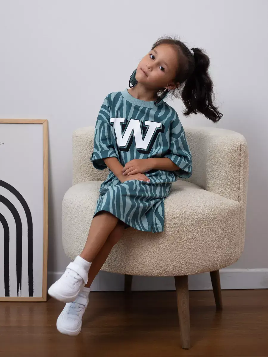 Свободный крой оверсайз обеспечивает хорошую посадку на фигуре и не стесняет движений. Благодаря отсутствию застежек девочки смогут одеваться самостоятельно.
