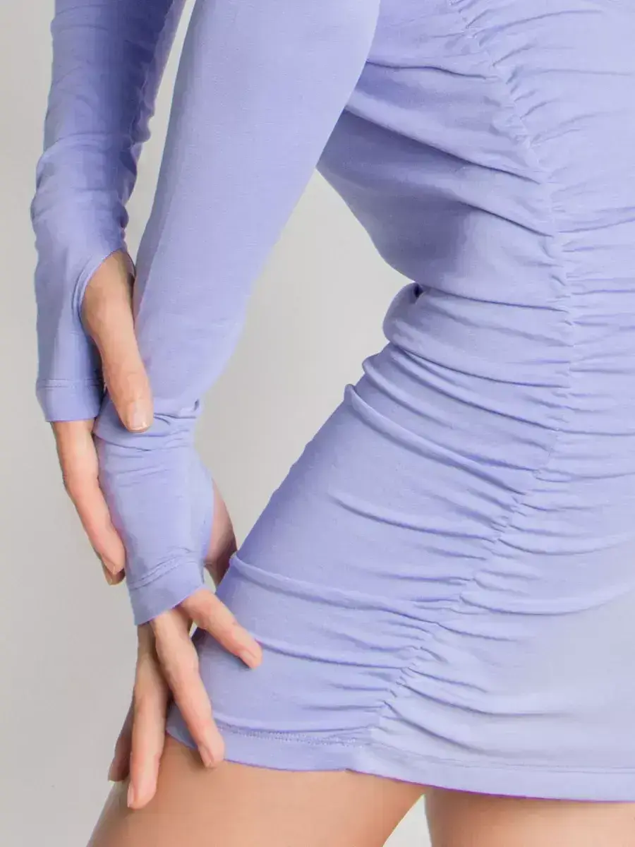 Короткое платье мини визуально удлиняет ноги. Длинный рукав с врезом для пальца - хит этого сезона! Платье трансформер выполнено из высококачественного трикотажа, который как "вторая кожа" облегает и дарит ощущение комфорта. Сборка по бокам придает нотку романтизма и делает его одновременно и повседневным и вечерним. Лиловое платье мини подчеркивает линию талии и визуально стройнит. Это многофункциональный элемент гардероба, который можно стилизовать как угодно: от праздничного до спортивного. Строгое платье в офис будет притягивать взгляды и вы будете получать массу комплиментов. Нарядное праздничное платье мини идеально подойдет на выход на мероприятие, на выпускной и в школу. Обтягивающее платье с длинным рукавом сделает вас центром внимания на любом мероприятии.
