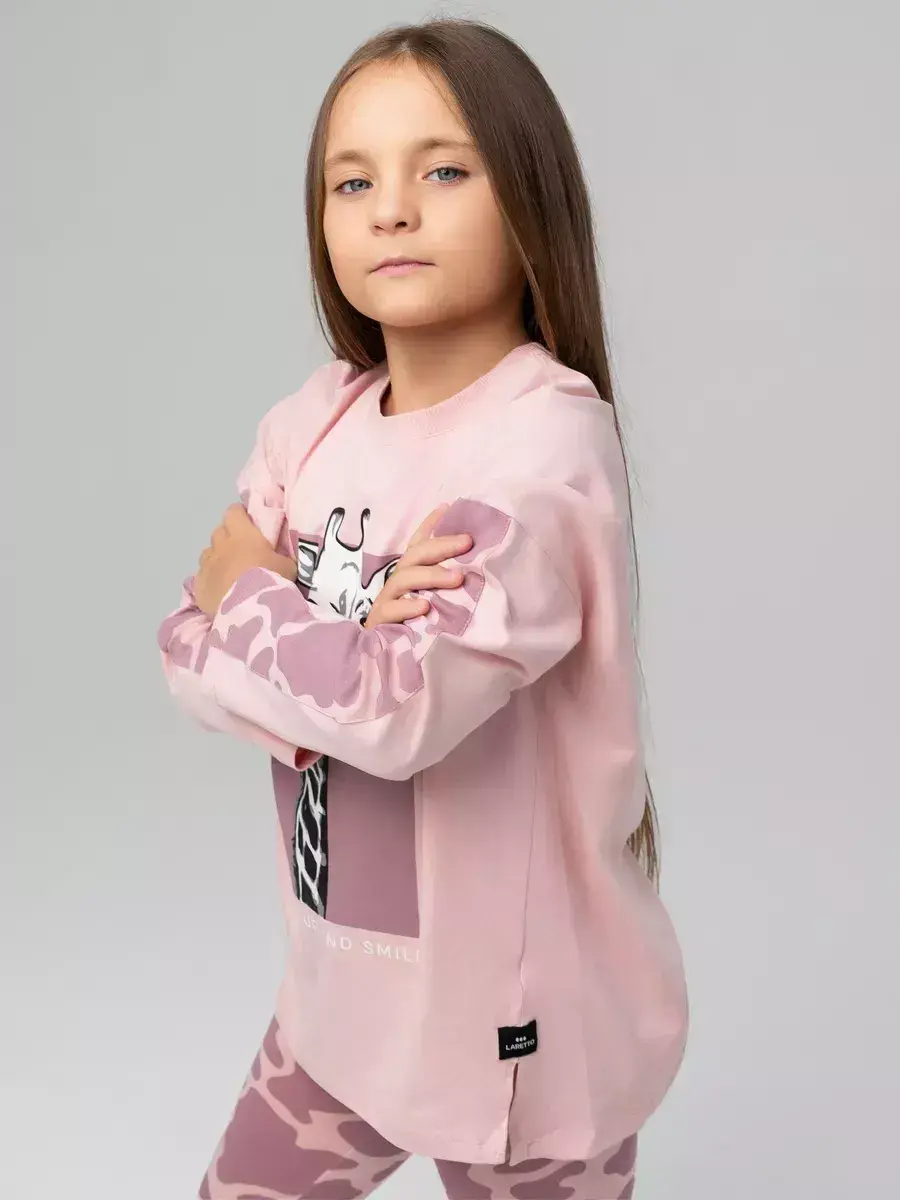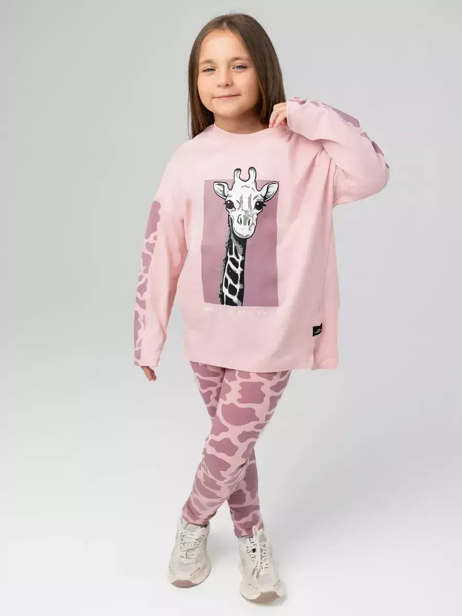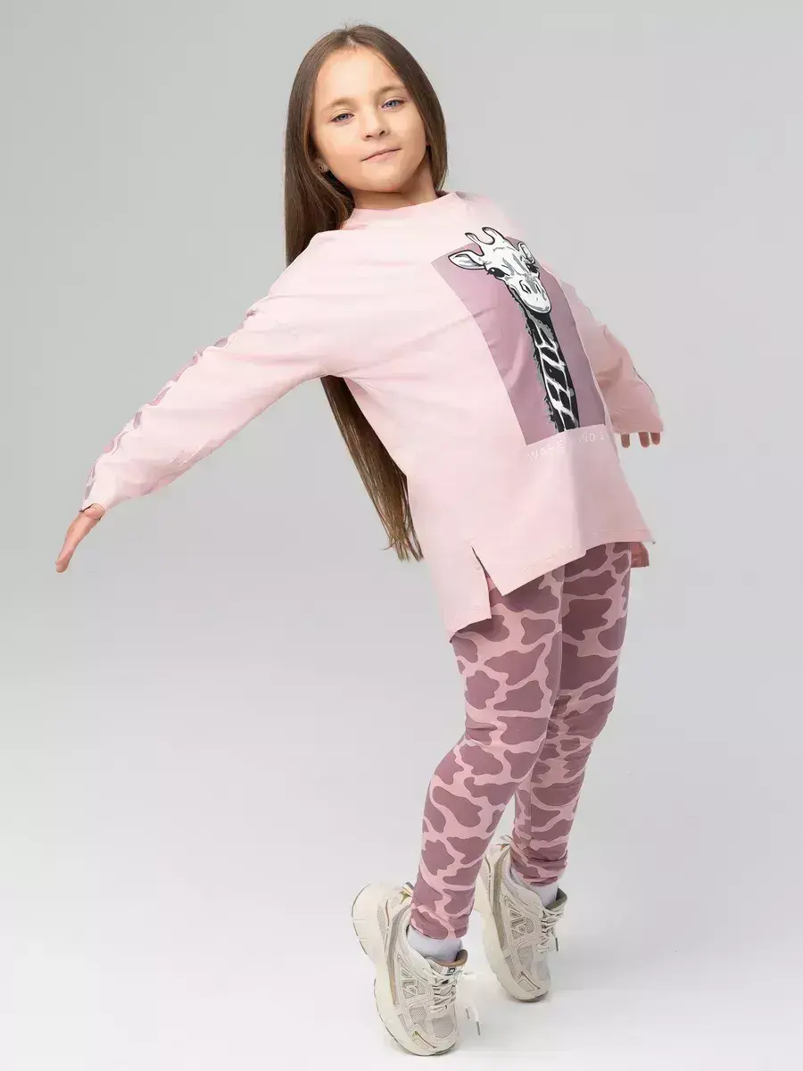 Лонг для девочки придает добавляет игривую нотку, а лосины обеспечивают максимальное удобство во время активных игр.
