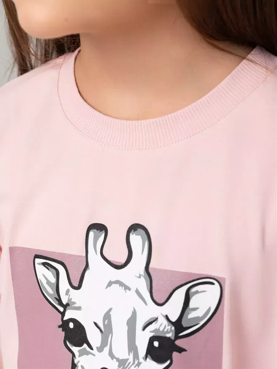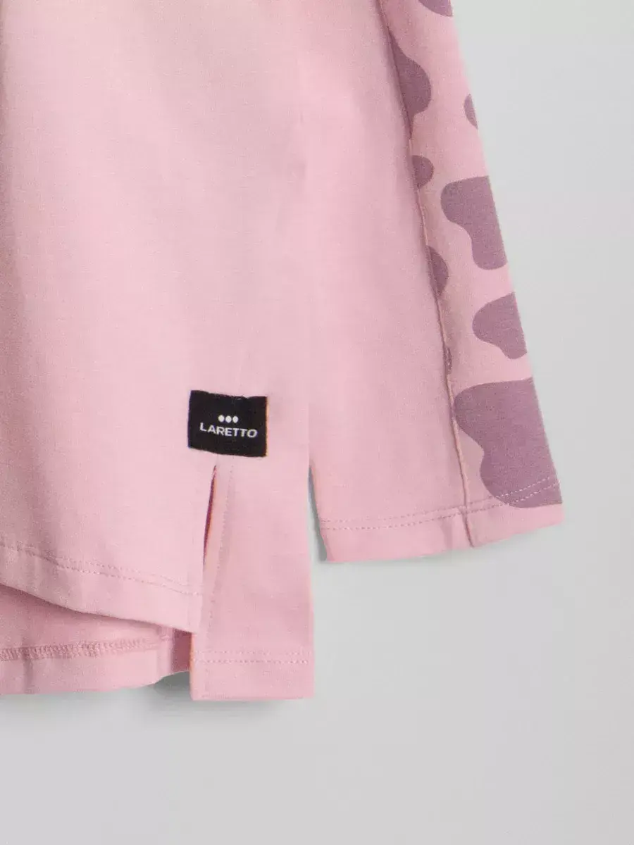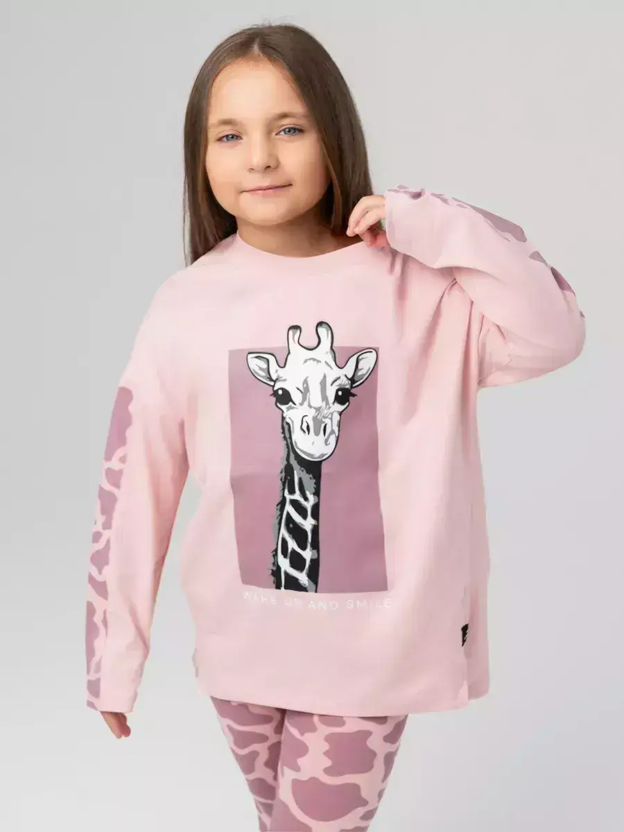 Лонг для девочки придает добавляет игривую нотку, а лосины обеспечивают максимальное удобство во время активных игр.