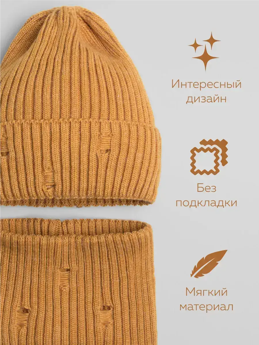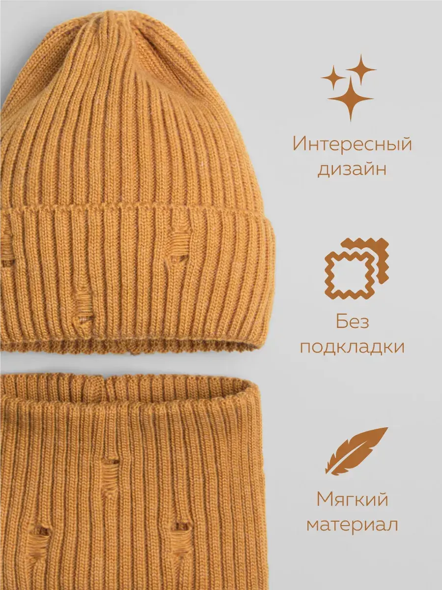 Шапка детская осенняя и снуд - это демисезонный комплект от бренда Bini mood, является отличным решением для переменчивой погоды осенью и теплой зимой. Шапка и снуд для детей и подростков выполнены из мягкой и гипоаллергенной пряжи, которая хорошо согревает и держит тепло. Шапка детская рваная имеет стильный дизайн с отворотом и "дырками", что делает ее модной и практичной. Большое количество расцветок и размеров позволит выбрать головной убор мальчикам, девочкам, подростку и взрослому.