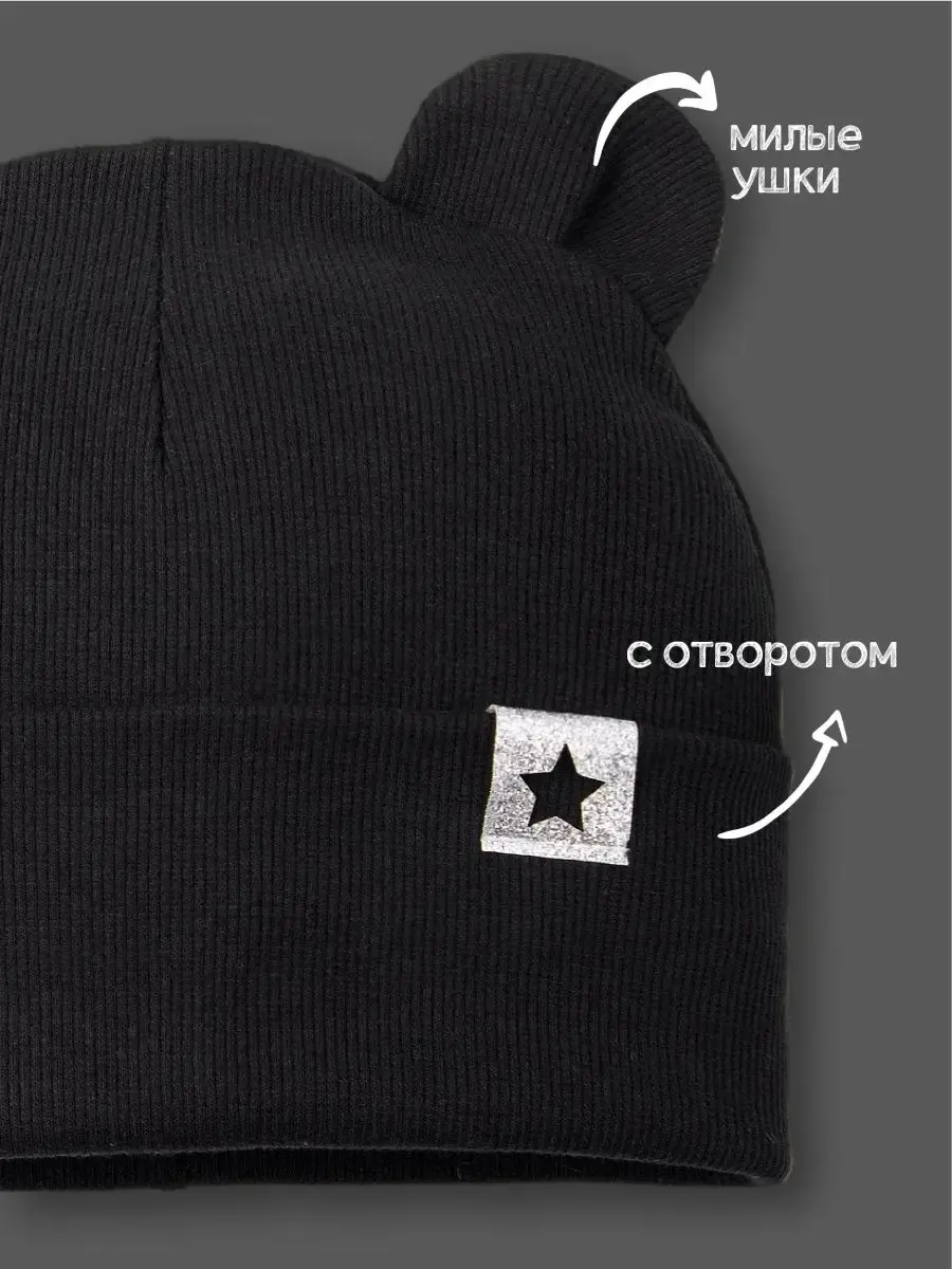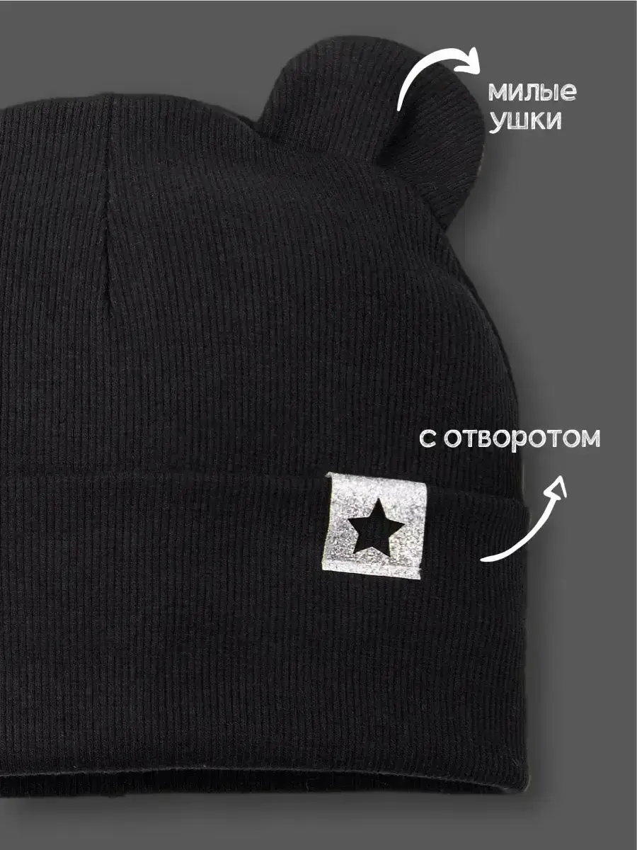 Трикотажная детская шапка представлена в различных цветах, что позволяет легко подобрать идеальный вариант под любой наряд. Шапка с ушками для детей добавляет игривости и оригинальности, делая эту модель особенно привлекательной для маленьких модников. Отлично подходит для школы или детского садика.