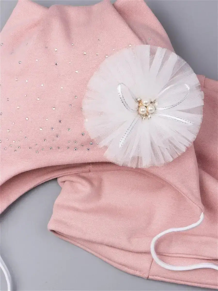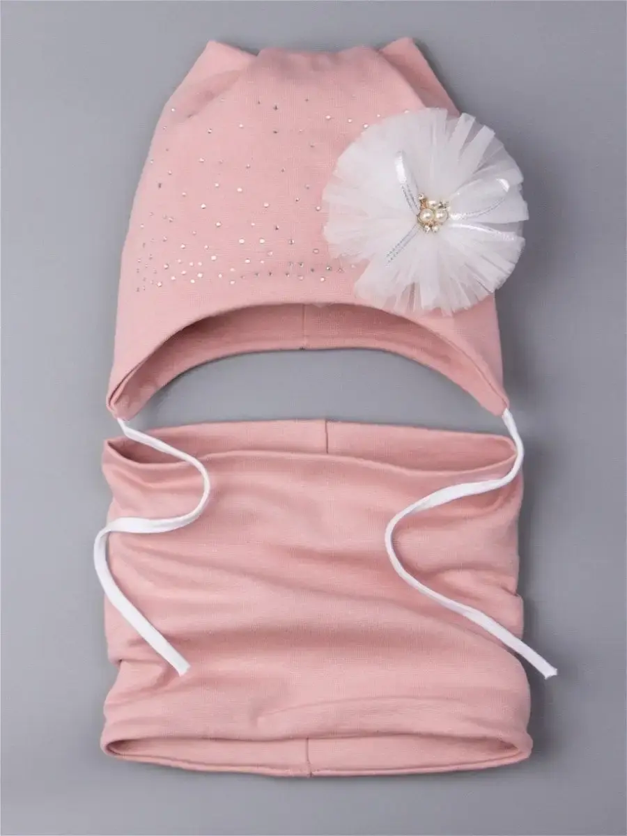 Демисезонная шапка для девочек со снудом — это идеальный выбор для холодного времени года. Незаменимый детский комплект для осени и периода межсезонья. Шапочка на завязках хорошо фиксируется и предотвращает сползание. А детский снуд защищает шею от сильного ветра.