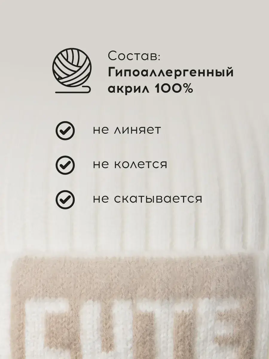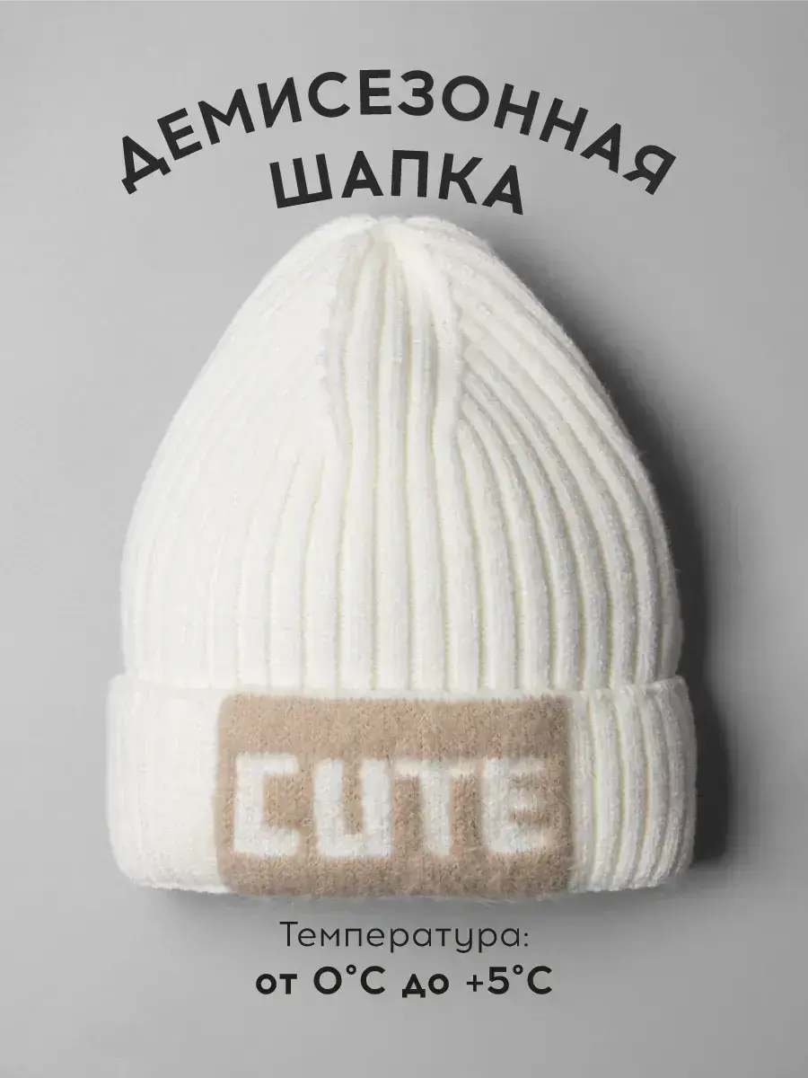 Шапка осенняя для девочки выполнена из мягкого и дышащего материала, который приятно покрывает голову, не вызывая дискомфорта и перегрева. Уникальный дизайн с нашивкой "CUTE" добавляет игривости и очарования любому образу, делая малышку еще более стильной.