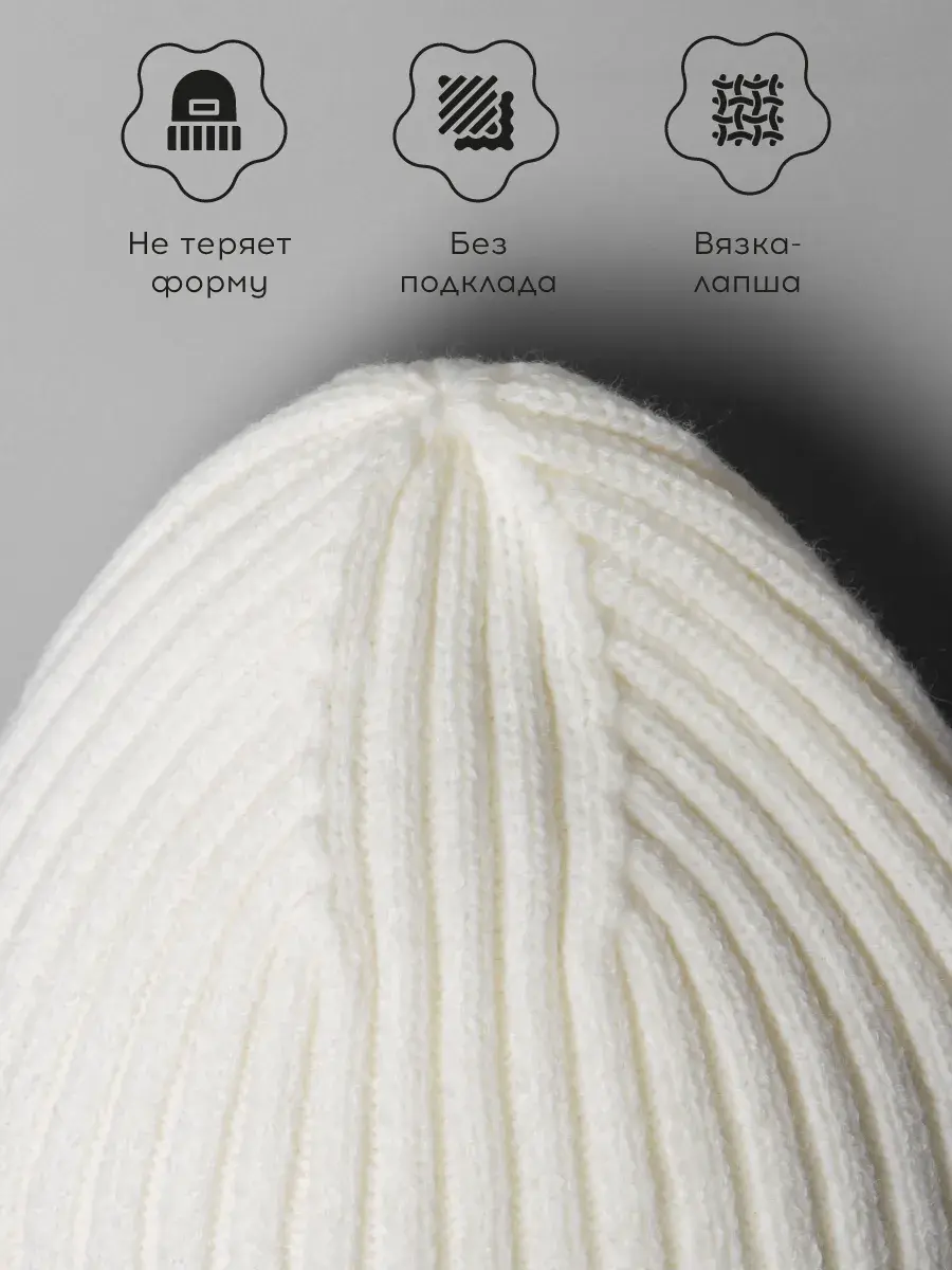 ZO-024/00-0057760/Шапка вязаная детская с отворотом/Молочный