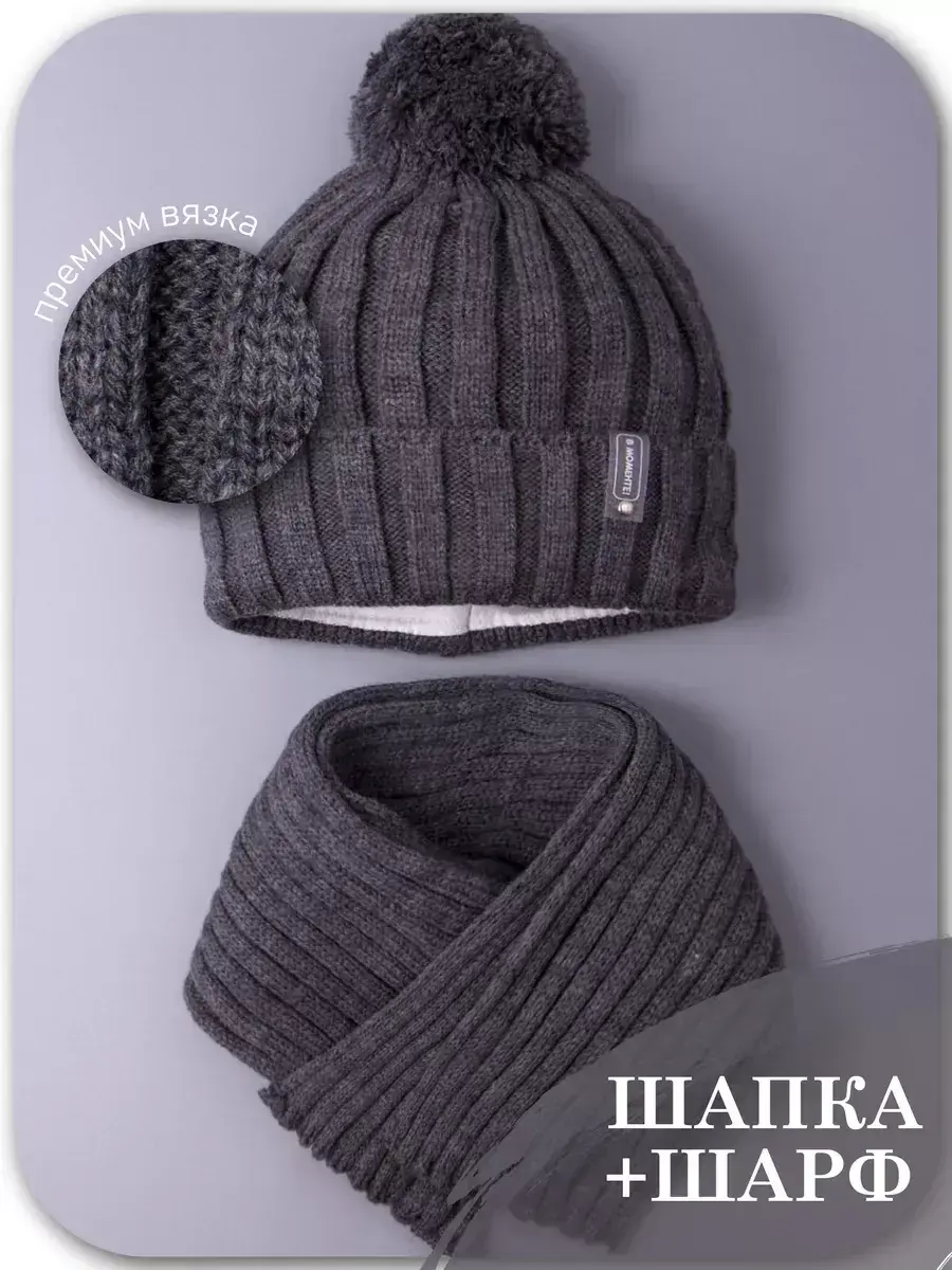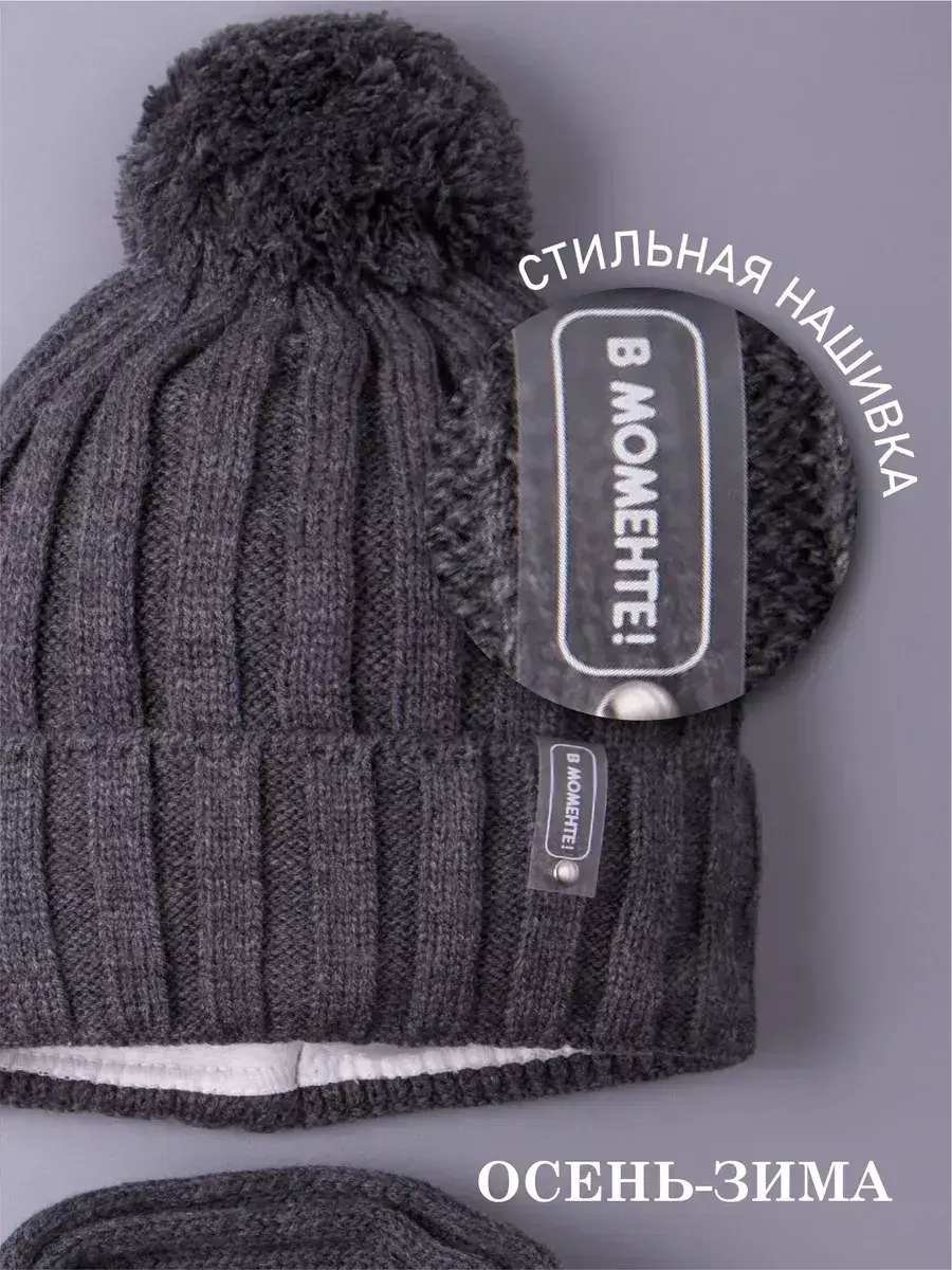 ШапкадетскаясбубономВМОМЕНТЕ!+шарф00-0029014