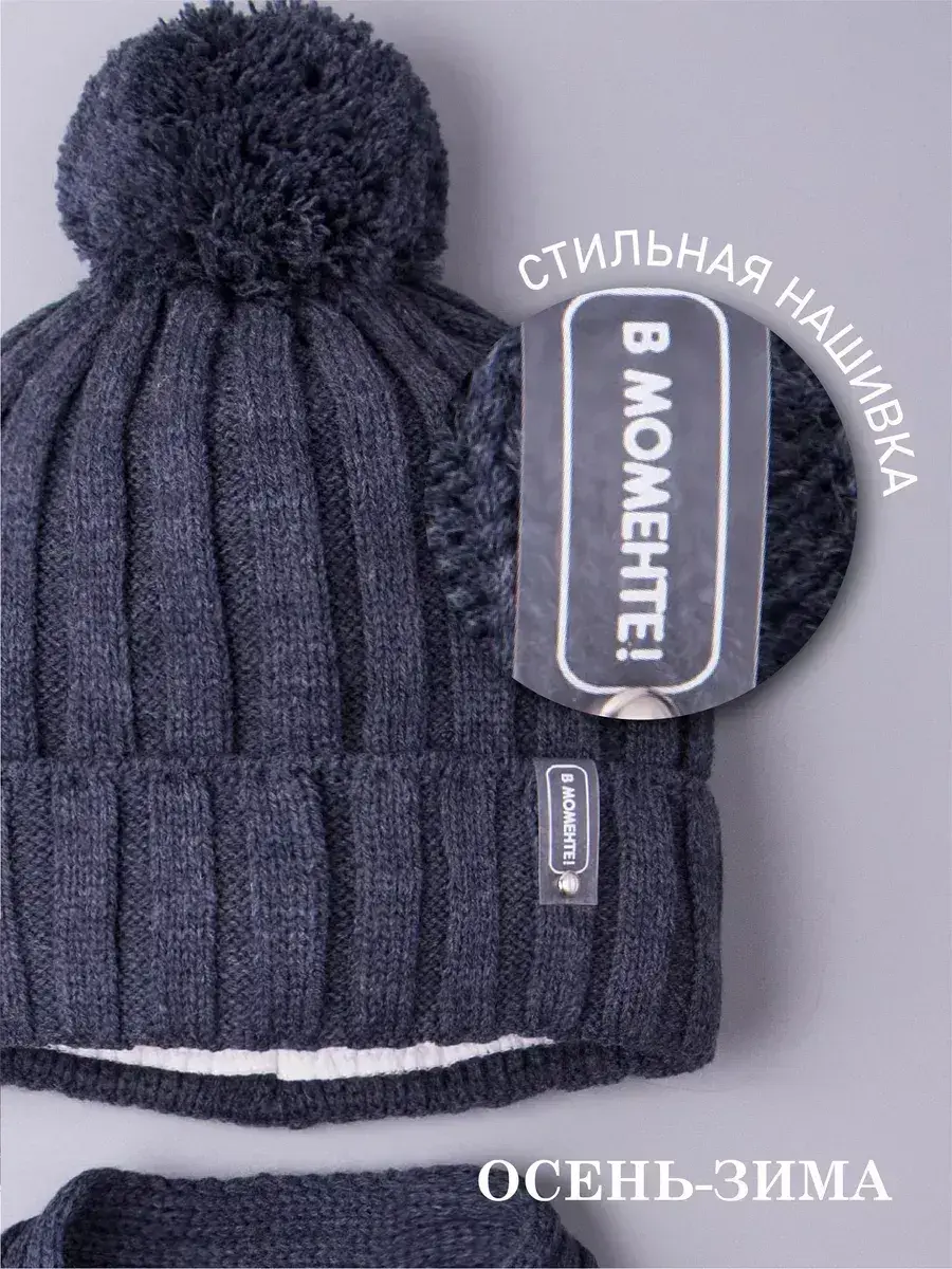 ШапкадетскаясбубономВМОМЕНТЕ!+шарф00-0028853