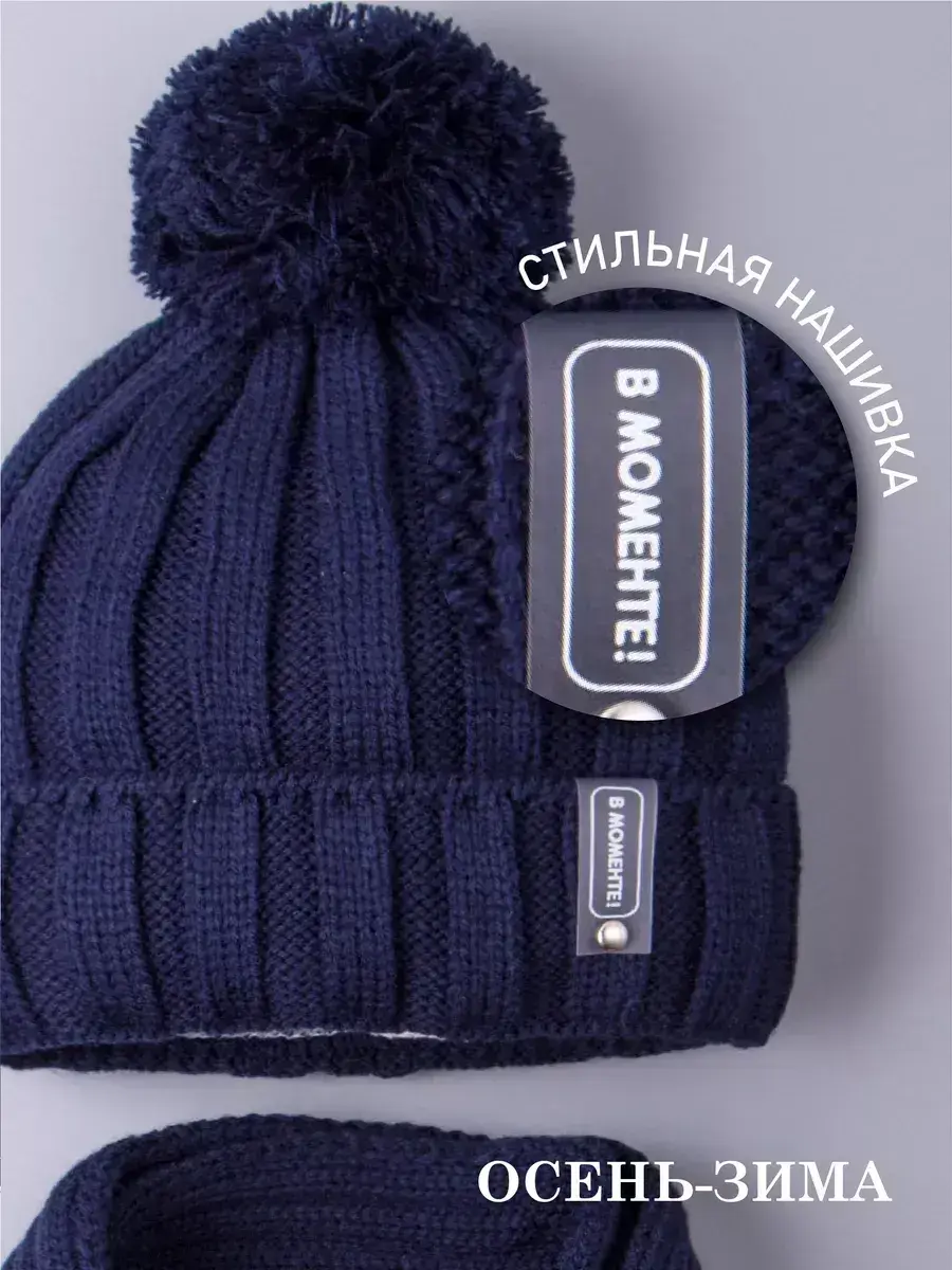 ШапкадетскаясбубономВМОМЕНТЕ!+шарф00-0029010