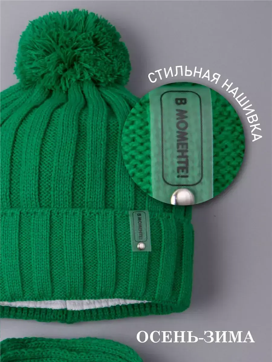 ШапкадетскаясбубономВМОМЕНТЕ!+шарф00-0029057