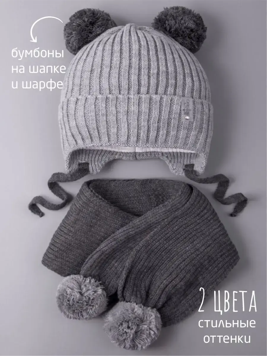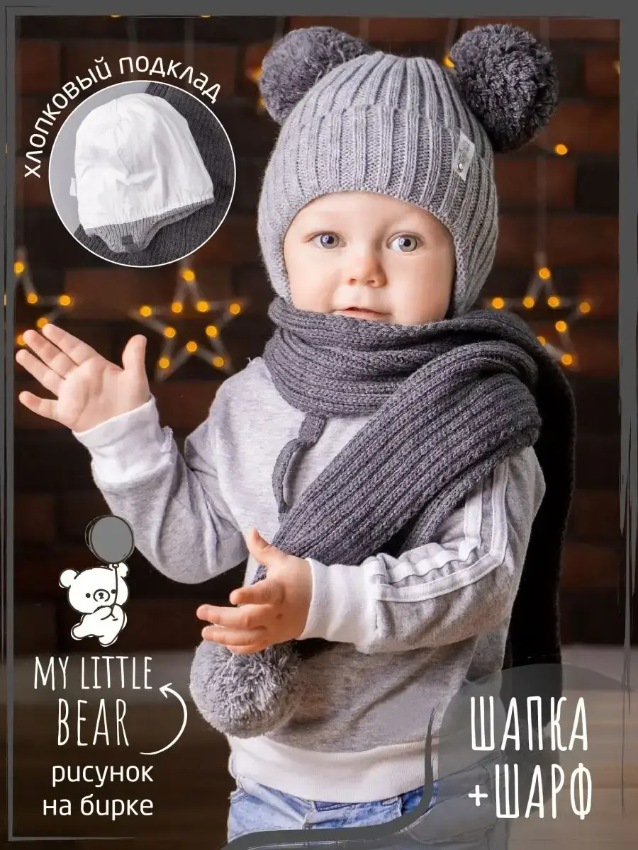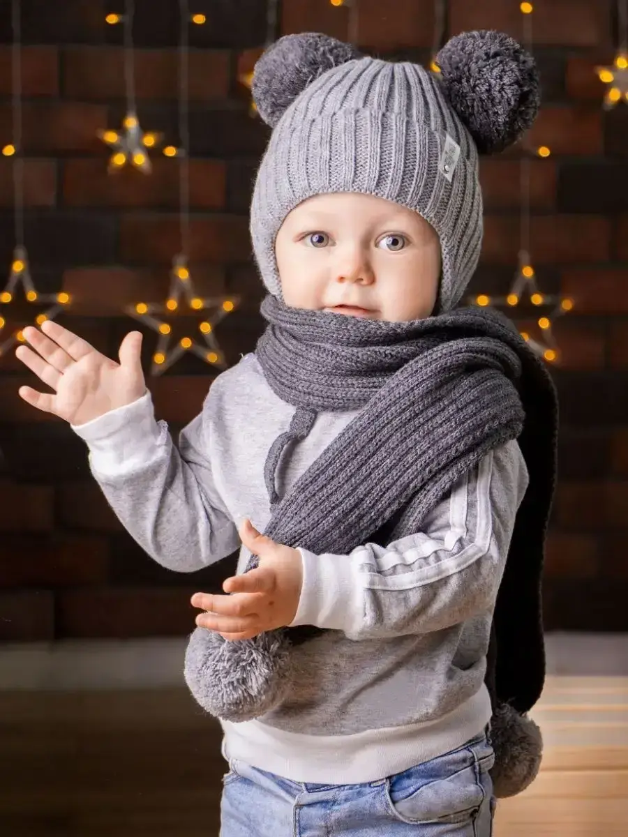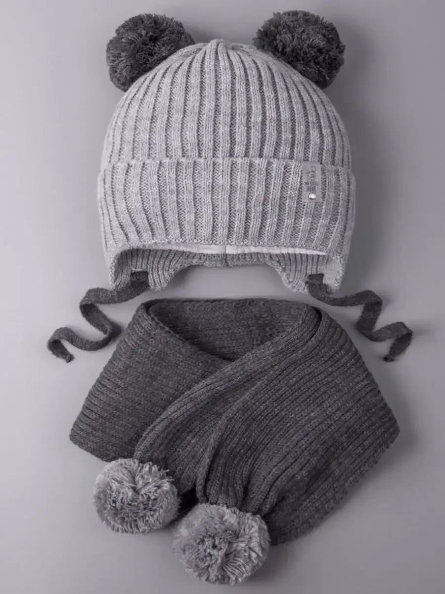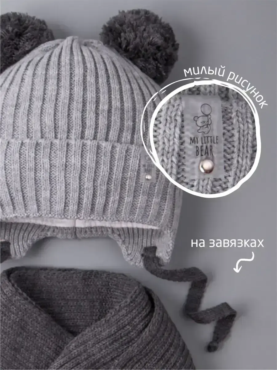 Шапка на завязках и шарф станут незаменимыми аксессуарами для Вашего ребенка на осень и теплую зиму. Шапка осенняя детская отлично подойдет как для мальчика, так и для девочки. Детский демисезонный комплект отлично подходит для прогулок на свежем воздухе, активных игр на улице, школы и детского садика. Универсальный размер и эластичная резинка обеспечивают надежную посадку на голове, не сковывая движений. Стильная шапка для девочки демисезонная — идеальный аксессуар для демисезонного периода. Изготовленная из мягкого и теплого материала, она обеспечит комфорт и защиту от холода. Теплая шапка на осень с завязками дополнена хлопковым подкладом, который комфортен для ежедневного использования. Шарф детский с помпонами отлично заменяет снуд или манишку. Благодаря оптимальной длине, его можно носить как под верхней одеждой, так и поверх нее. Съемная прозрачная брошь с изображением медвежонка добавит милого дизайна! Детская шапка для мальчика и снуд будут модным и практичным дополнением к образу ребенка в период межсезонья!