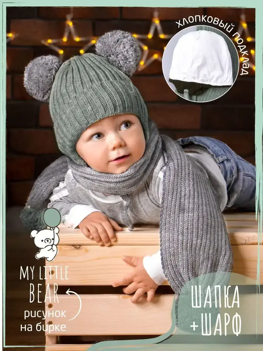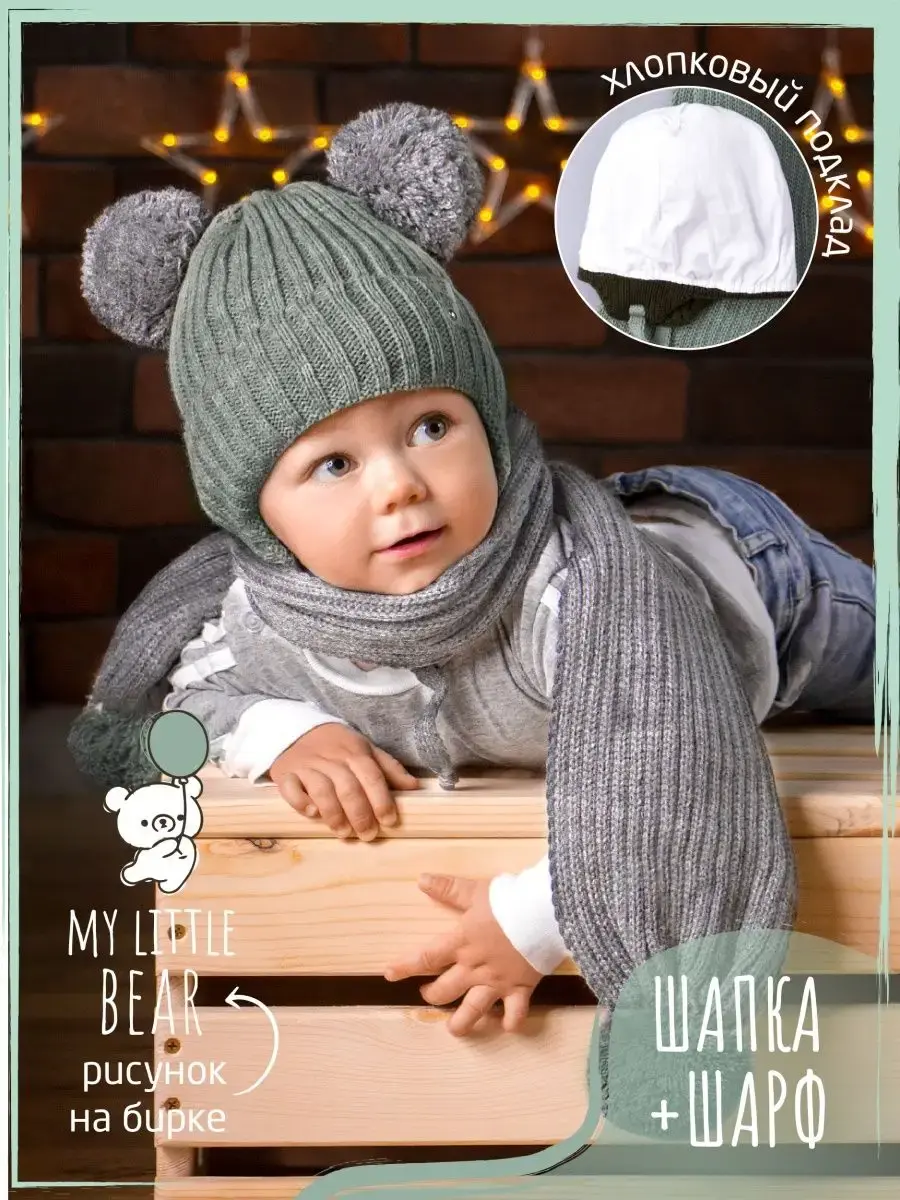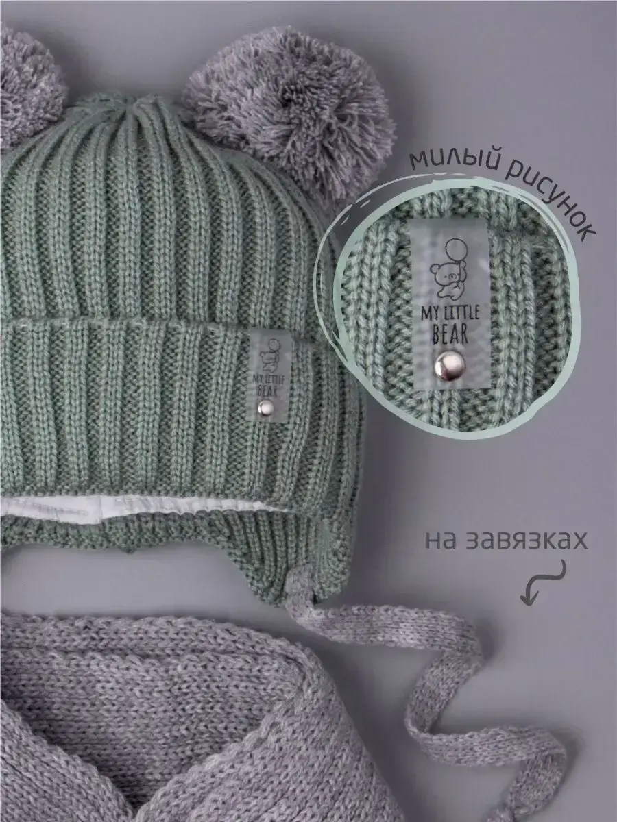 Шапка на завязках и шарф станут незаменимыми аксессуарами для Вашего ребенка на осень и теплую зиму. Шапка осенняя детская отлично подойдет как для мальчика, так и для девочки. Детский демисезонный комплект отлично подходит для прогулок на свежем воздухе, активных игр на улице, школы и детского садика. Универсальный размер и эластичная резинка обеспечивают надежную посадку на голове, не сковывая движений. Стильная шапка для девочки демисезонная — идеальный аксессуар для демисезонного периода. Изготовленная из мягкого и теплого материала, она обеспечит комфорт и защиту от холода. Теплая шапка на осень с завязками дополнена хлопковым подкладом, который комфортен для ежедневного использования. Шарф детский с помпонами отлично заменяет снуд или манишку. Благодаря оптимальной длине, его можно носить как под верхней одеждой, так и поверх нее. Съемная прозрачная брошь с изображением медвежонка добавит милого дизайна! Детская шапка для мальчика и снуд будут модным и практичным дополнением к образу ребенка в период межсезонья!
