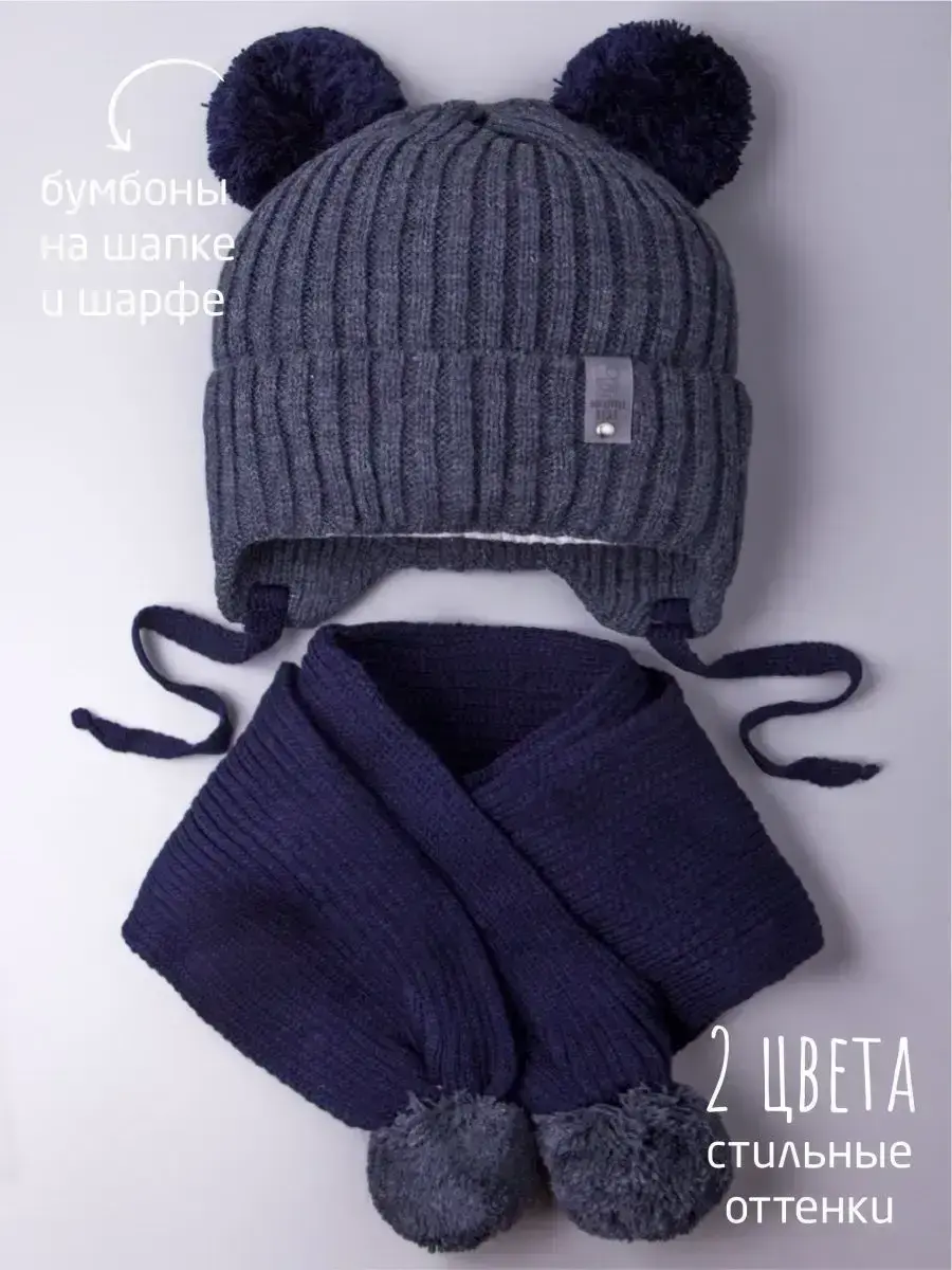 Шапка на завязках и шарф станут незаменимыми аксессуарами для Вашего ребенка на осень и теплую зиму. Шапка осенняя детская отлично подойдет как для мальчика, так и для девочки. Детский демисезонный комплект отлично подходит для прогулок на свежем воздухе, активных игр на улице, школы и детского садика. Универсальный размер и эластичная резинка обеспечивают надежную посадку на голове, не сковывая движений. Стильная шапка для девочки демисезонная — идеальный аксессуар для демисезонного периода. Изготовленная из мягкого и теплого материала, она обеспечит комфорт и защиту от холода. Теплая шапка на осень с завязками дополнена хлопковым подкладом, который комфортен для ежедневного использования. Шарф детский с помпонами отлично заменяет снуд или манишку. Благодаря оптимальной длине, его можно носить как под верхней одеждой, так и поверх нее. Съемная прозрачная брошь с изображением медвежонка добавит милого дизайна! Детская шапка для мальчика и снуд будут модным и практичным дополнением к образу ребенка в период межсезонья!