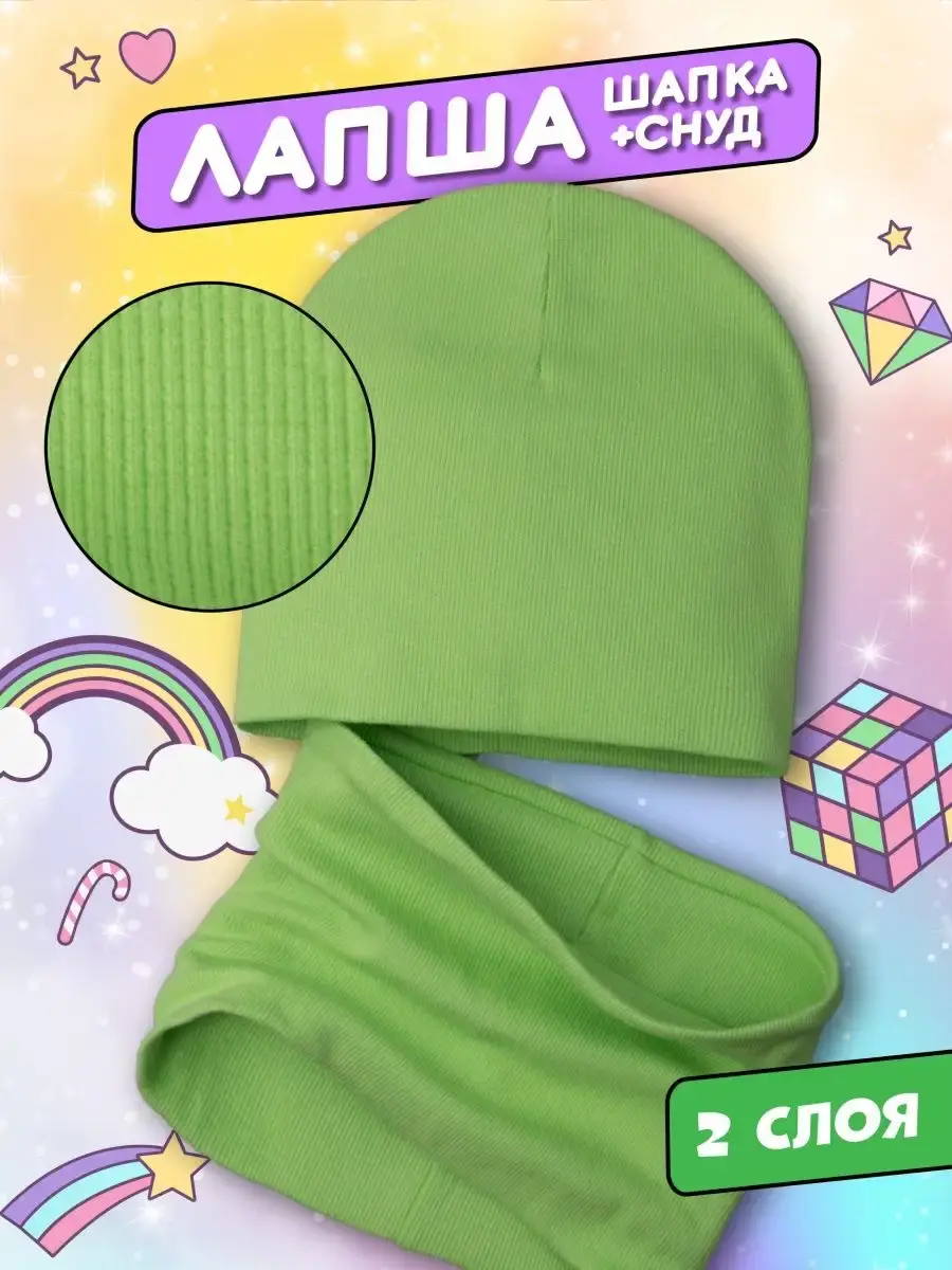 Тонкая шапка детская и уютный снуд - отличный выбор для демисезонных прогулок. Головной убор для мальчика и для девочки выполнен в технике вязка-лапша, что придает особую текстуру. Шапочка вязаная, но не плотная, поэтому комфортно сидит на голове весь день.