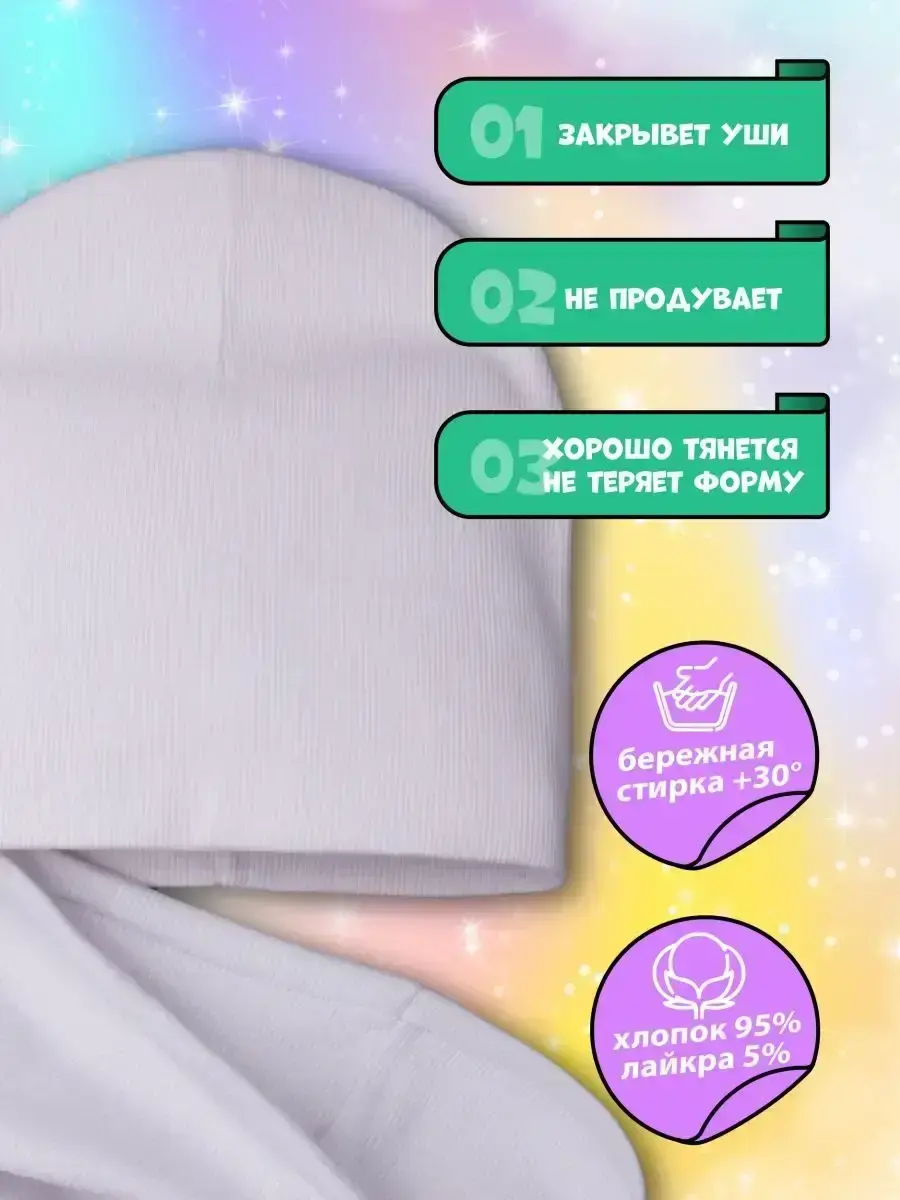 Малышам обеспечен максимальный комфорт благодаря мягкому материалу. Такой детский головной убор просто идеально подходит под любой демисезонный наряд. Ребёнку будет тепло даже в прохладные осенние дни. Благодаря особенности вязки изделия "в рубчик" шапочка отличается хорошей эластичностью.