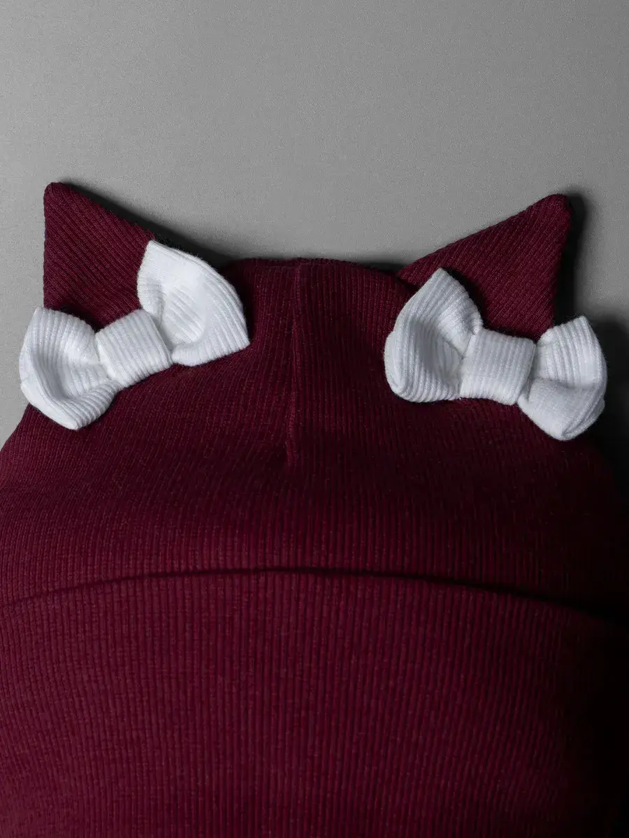 Шапка для девочки осенняя выполнена в нежном стиле: украшена милыми бантиками и ушками котика, она радует не только теплом, но и эстетикой. Материал — мягкий трикотаж в технике «в рубчик», который хорошо держит форму, не растягивается и не теряет вид даже после многократных стирок. Модель имеет широкий отворот, позволяющий регулировать посадку шапки по глубине — удобно и практично для активных детей.